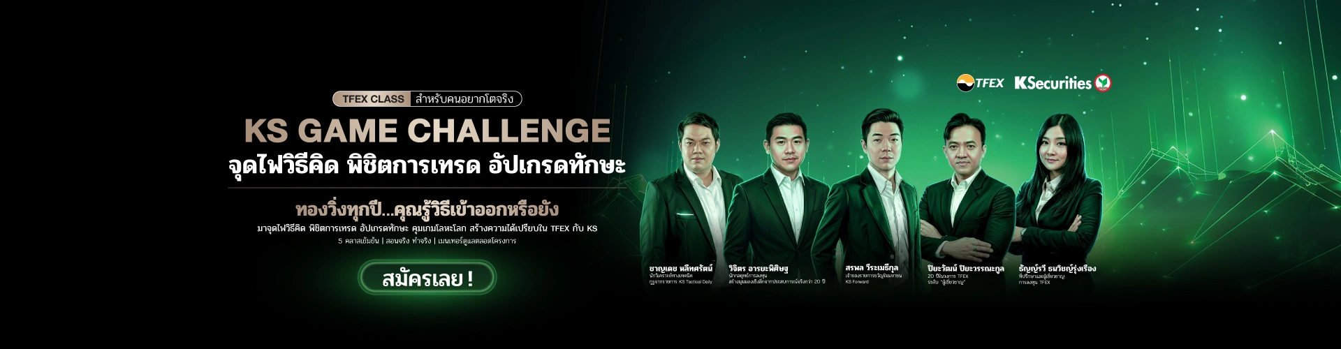 KS Game Challenge | TFEX Class สำหรับคนอยากโตจริง จุดไฟวิธีคิด พิชิตการเทรด อัปเกรดทักษะ KS ชวนเข้าร่วม "KS TFEX Academy+ 2026" โครงการที่จะปูพื้นฐาน TFEX ให้แน่นจนถึงเทคนิคระดับมืออาชีพ 5 คลาสเข้มข้น สอนจริง ทำจริง มีเมนเทอร์ดูแลตลอดโครงการ