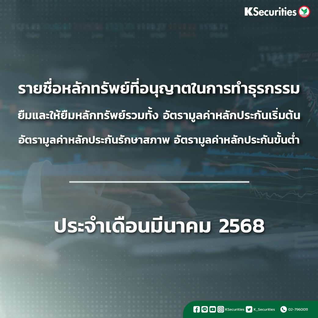รายชื่อหลักทรัพย์ที่อนุญาตในการทำธุรกรรมยืมและให้ยืมหลักทรัพย์ ประจำเดือนมีนาคม 2568