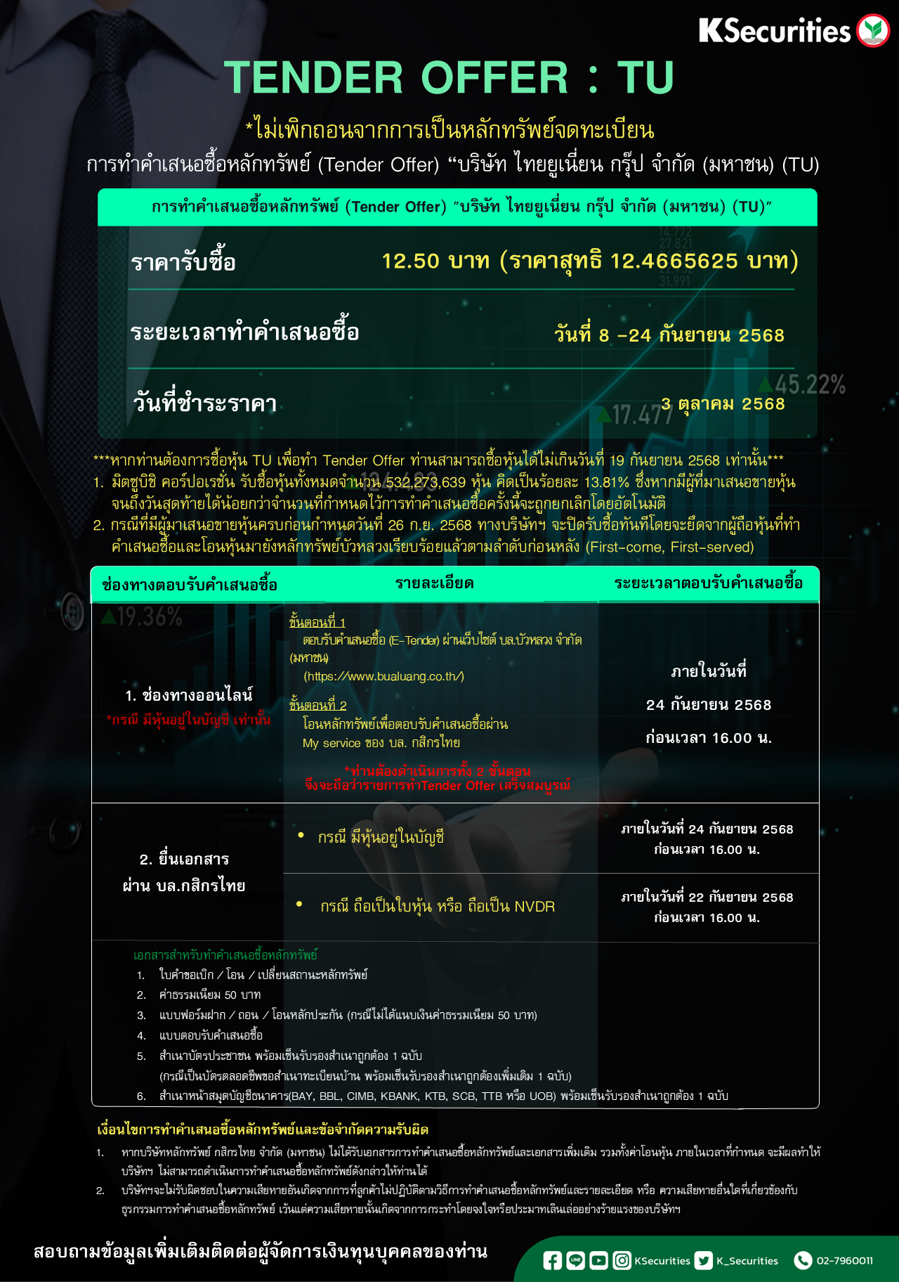 ขั้นตอนที่ 1: ตอบรับคำเสนอซื้อ (E-Tender) ผ่านเว็บไซต์ บล. บัวหลวง คลิกที่นี่