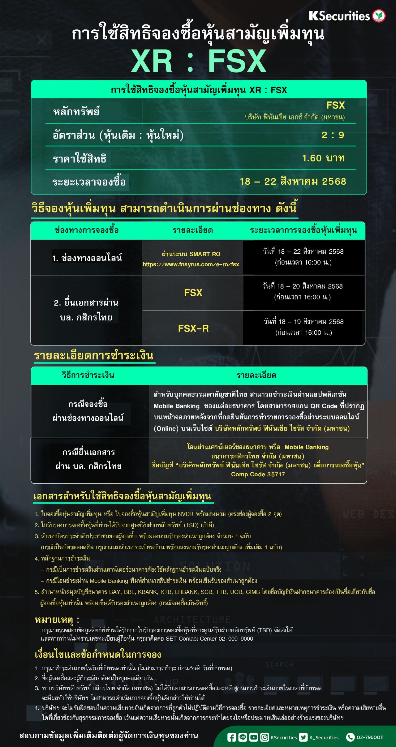 ศึกษาคู่มือการจองซื้อหลักทรัพย์ แบบฟอร์ม และ Bill Payment FSX คลิกที่นี่