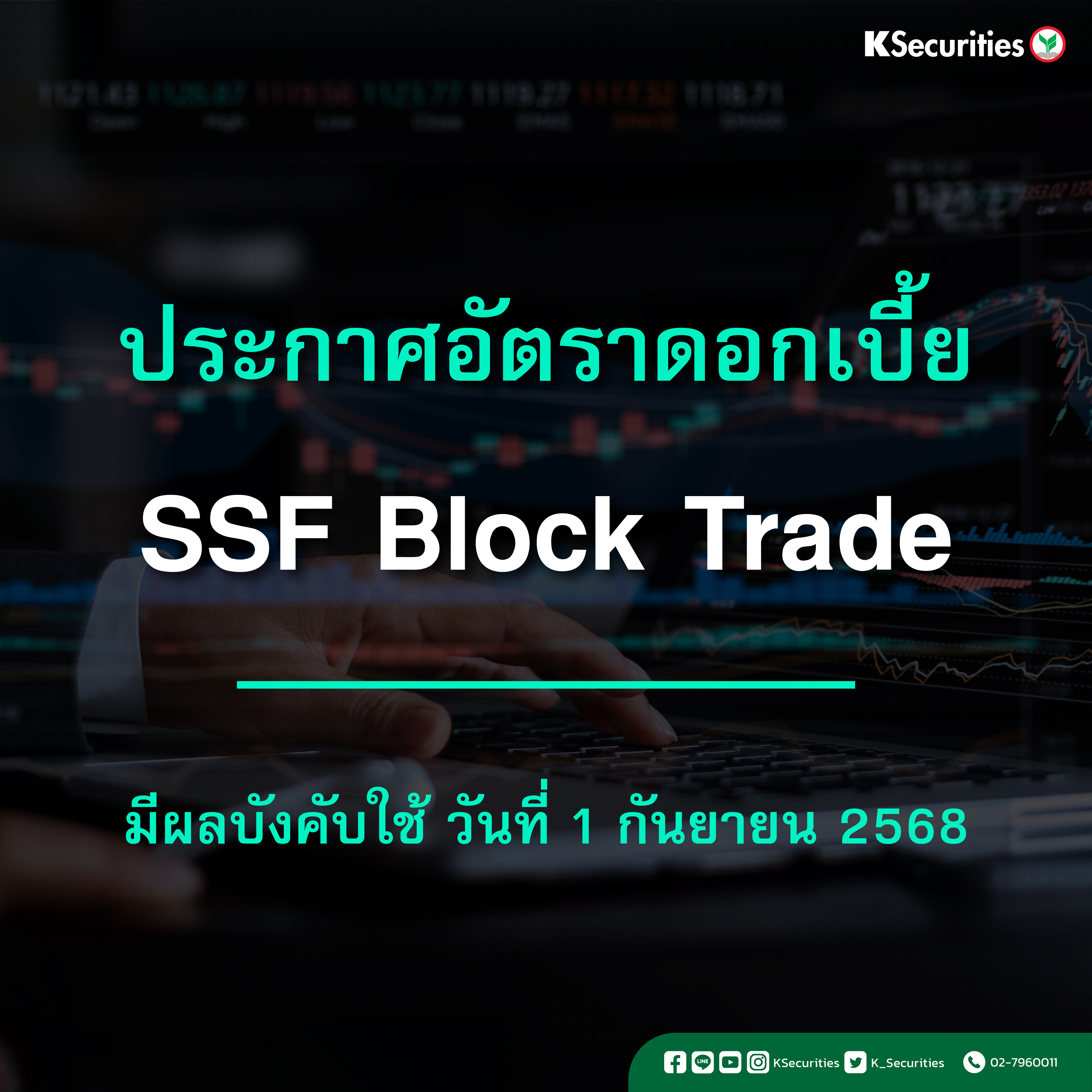 ประกาศอัตราดอกเบี้ย SSF Block Trade มีผลบังคับใช้วันที่ 1 กันยายน 2568