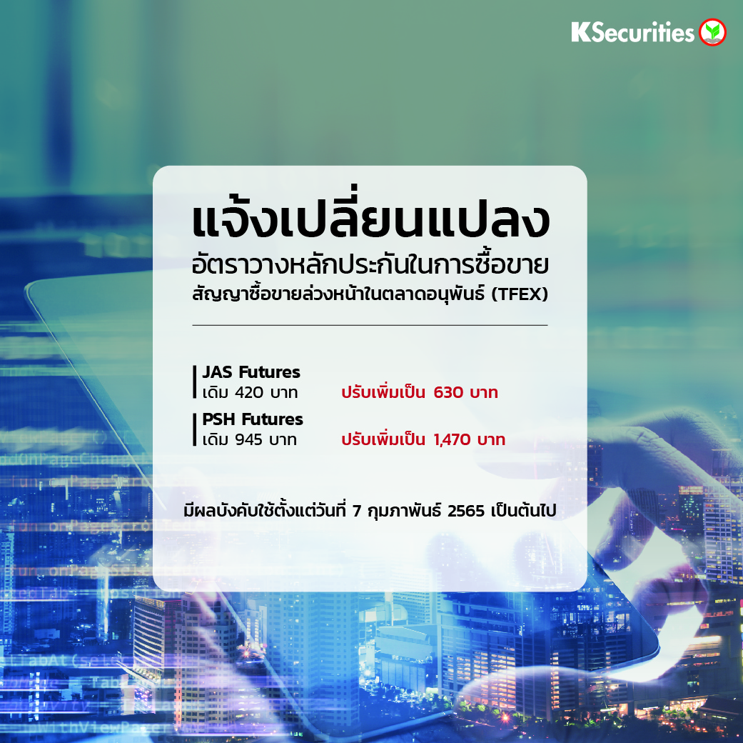 TH Version แจ้งเปลี่ยนแปลงอัตราวางหลักประกันในการซื้อขายสัญญาซื้อขายล่วงหน้าในตลาด TFEX