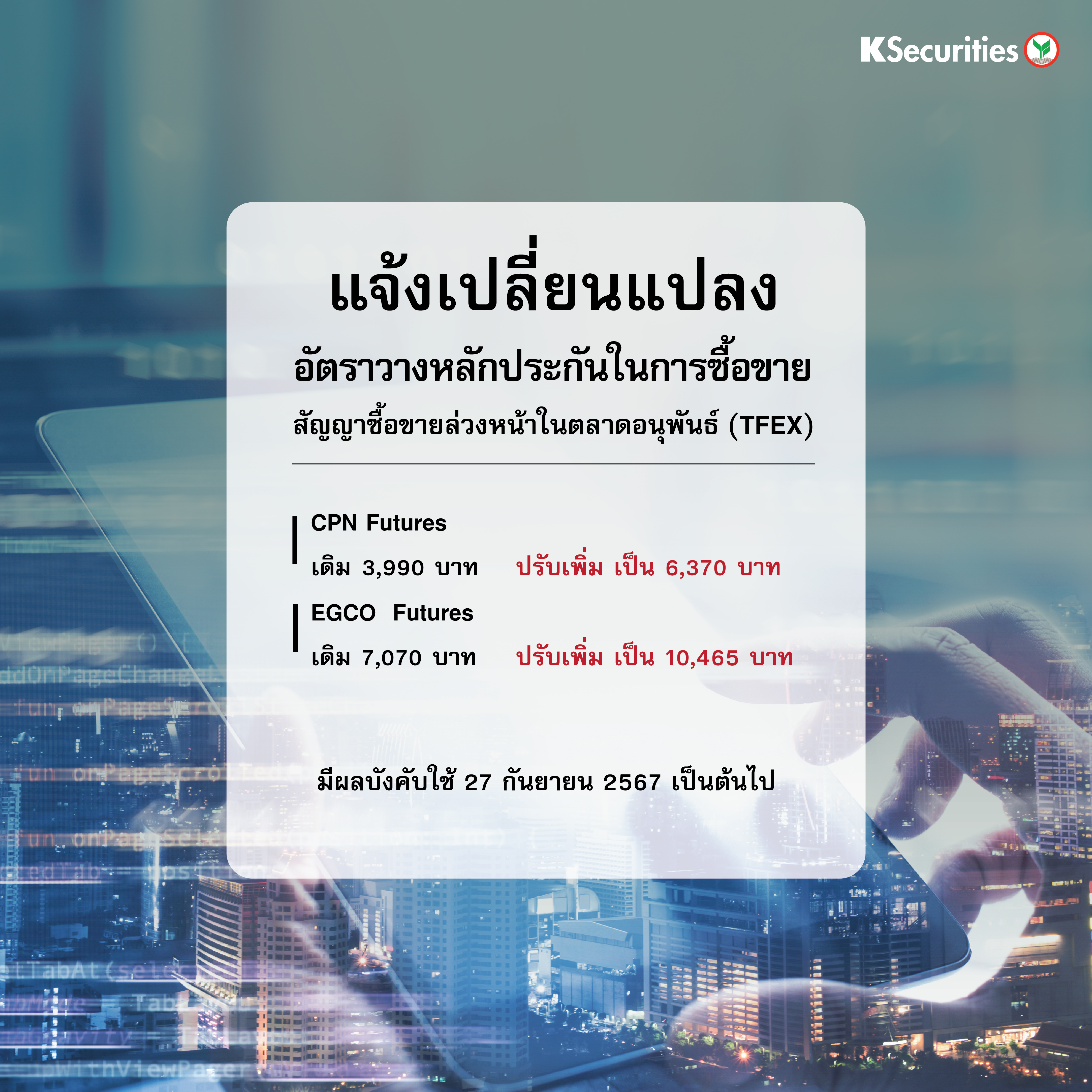 TH Version แจ้งการเปลี่ยนแปลงอัตราวางหลักประกันในการซื้อขายสัญญาซื้อขายล่วงหน้าในตลาดTFEX