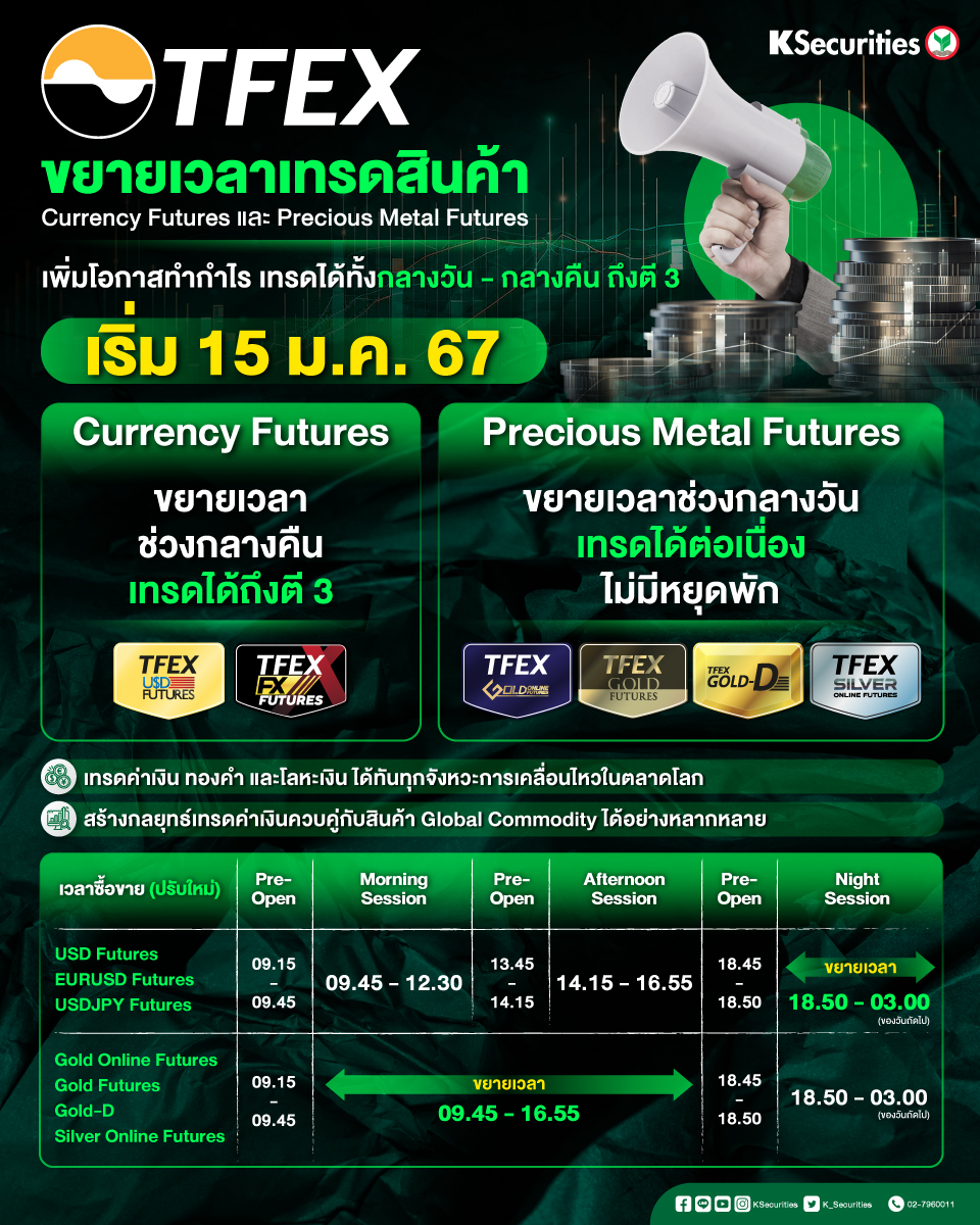 TFEX ขยายเวลาเทรดสินค้า Currency Futures และ Precious Metal Futures
