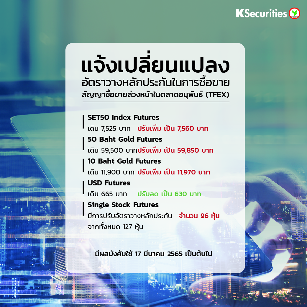 TH Version แจ้งเปลี่ยนแปลงอัตราวางหลักประกันในการซื้อขายสัญญาซื้อขายล่วงหน้าในตลาด TFEX