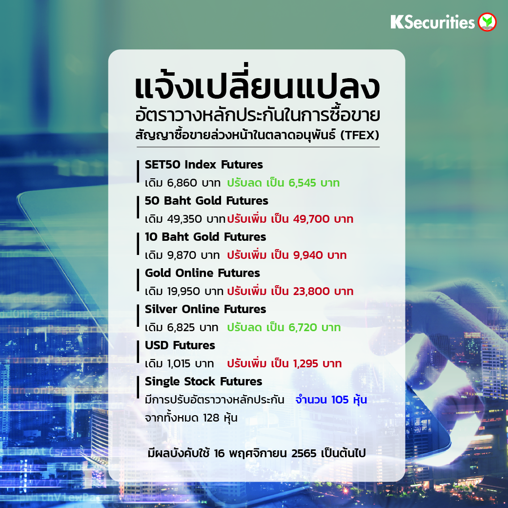 EN Version แจ้งเปลี่ยนแปลงอัตราวางหลักประกันในการซื้อขายสัญญาซื้อขายล่วงหน้าในตลาด TFEX