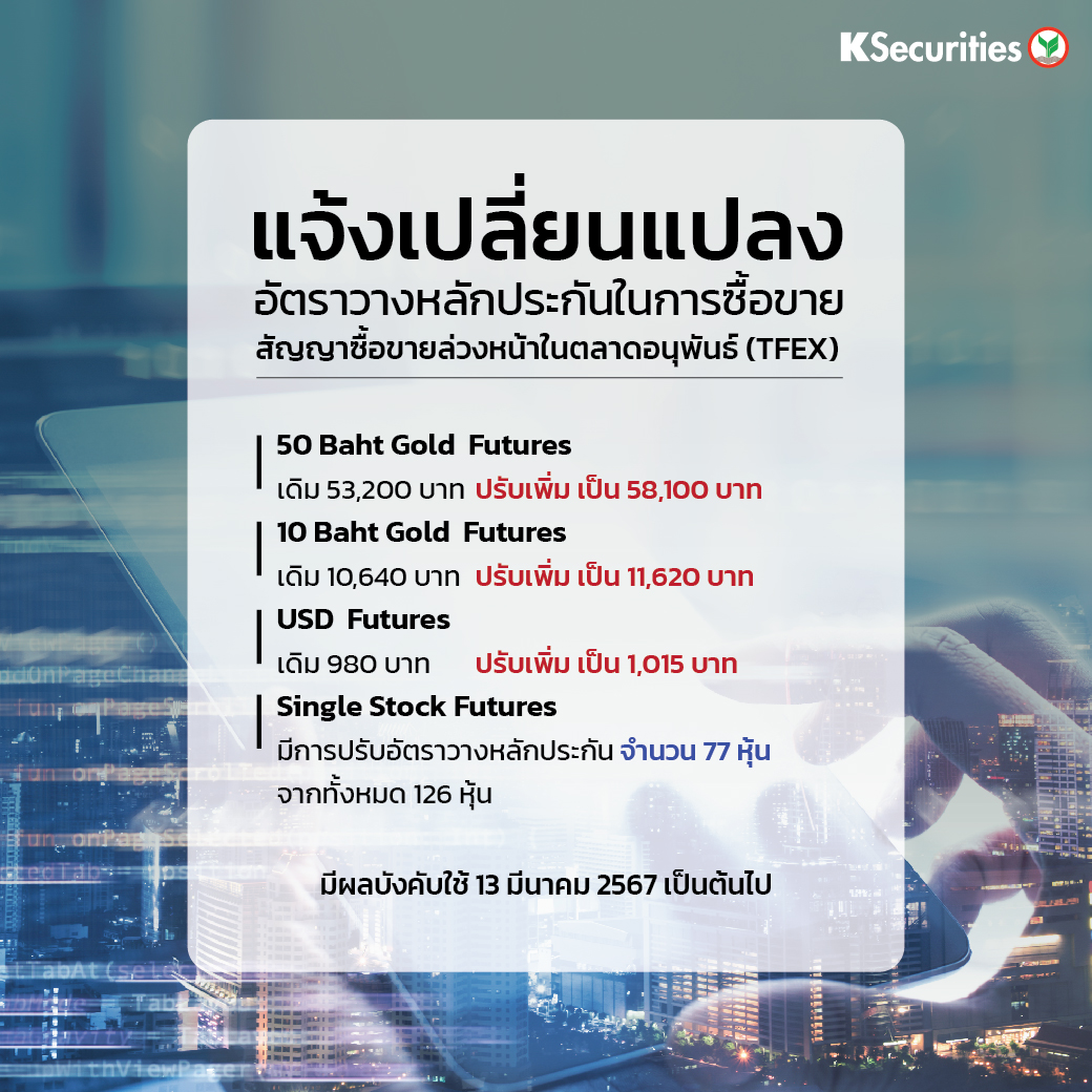 TH Version แจ้งเปลี่ยนแปลงอัตราวางหลักประกันในการซื้อขายสัญญาซื้อขายล่วงหน้าในตลาด TFEX