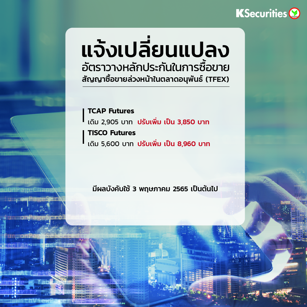 TH Version แจ้งเปลี่ยนแปลงอัตราวางหลักประกันในการซื้อขายสัญญาซื้อขายล่วงหน้าในตลาด TFEX