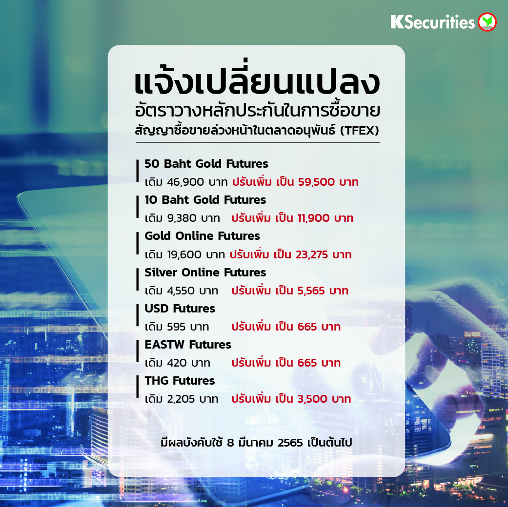 TH Version แจ้งเปลี่ยนแปลงอัตราวางหลักประกันในการซื้อขายสัญญาซื้อขายล่วงหน้าในตลาด TFEX
