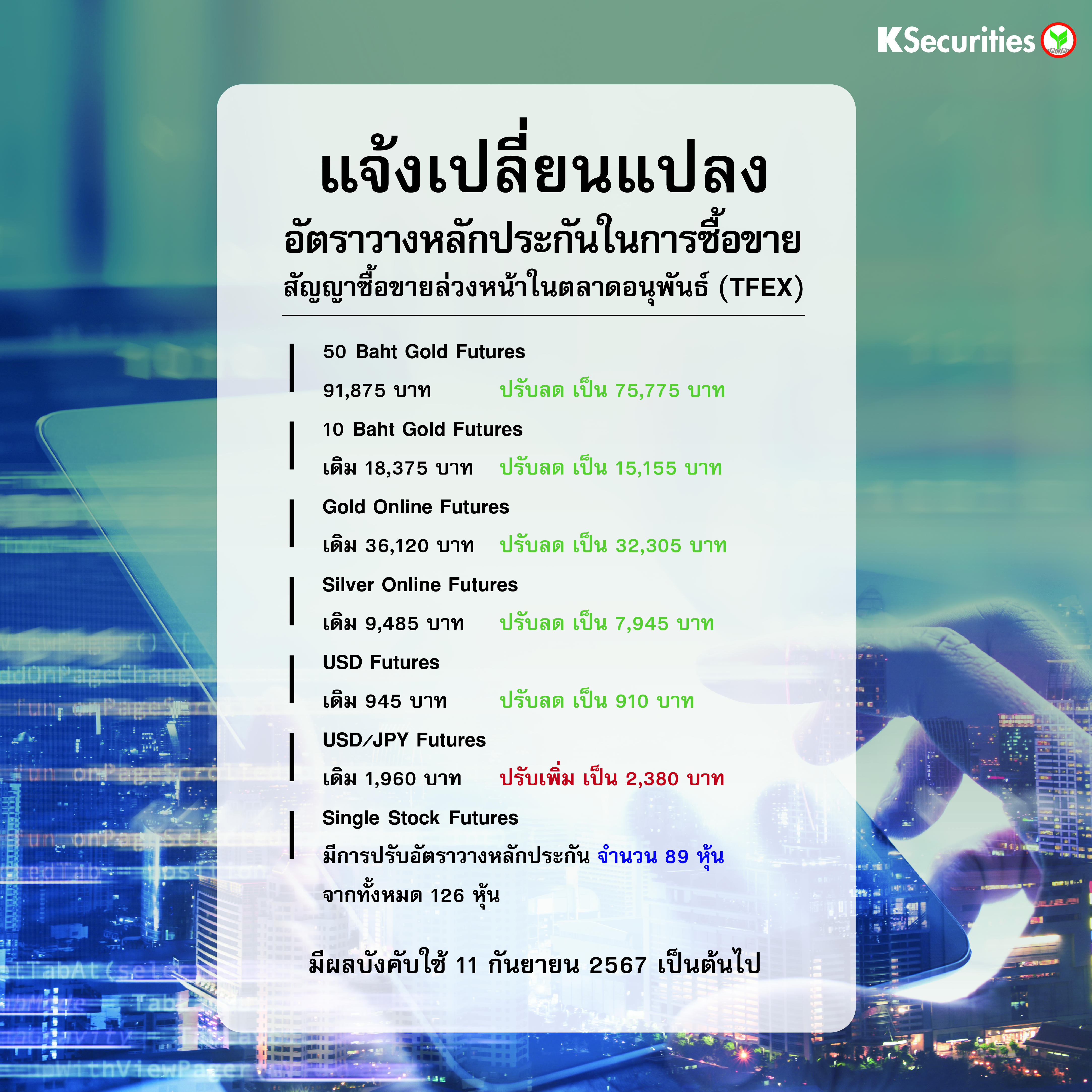 TH Version แจ้งการเปลี่ยนแปลงอัตราวางหลักประกันในการซื้อขายสัญญาซื้อขายล่วงหน้าในตลาดTFEX