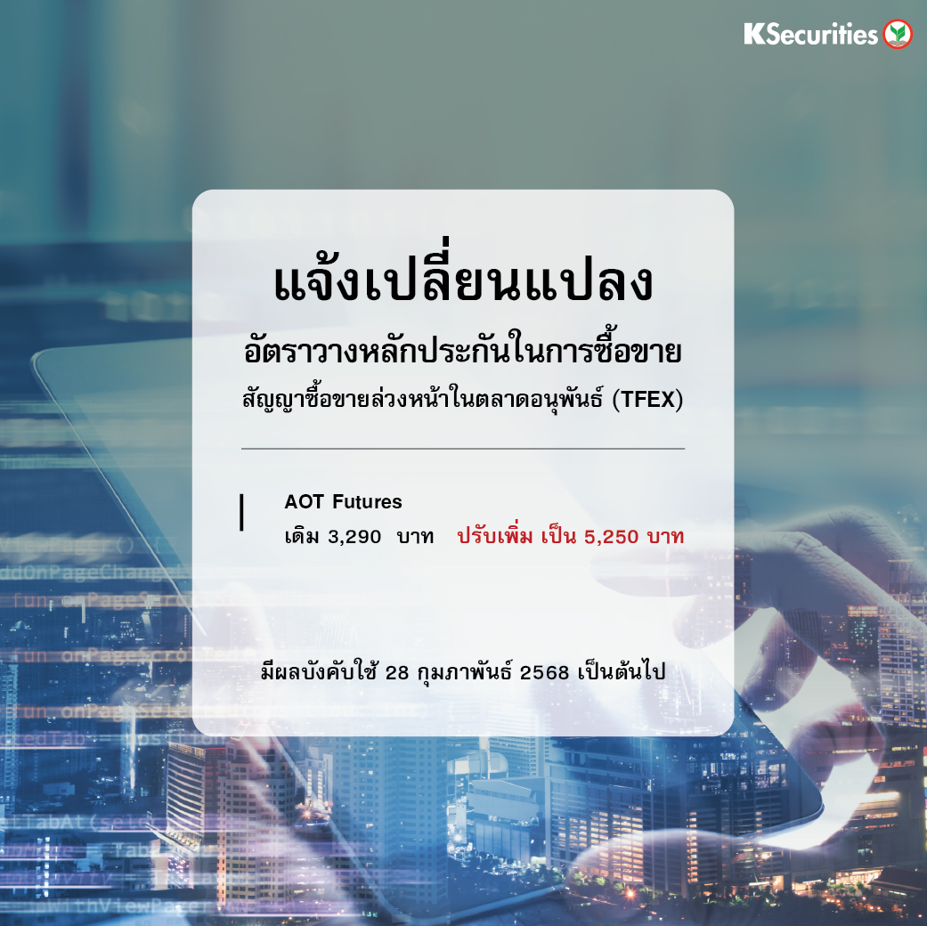 EN Version แจ้งเปลี่ยนแปลงอัตราวางหลักประกันในการซื้อขายสัญญาซื้อขายล่วงหน้าในตลาด TFEX