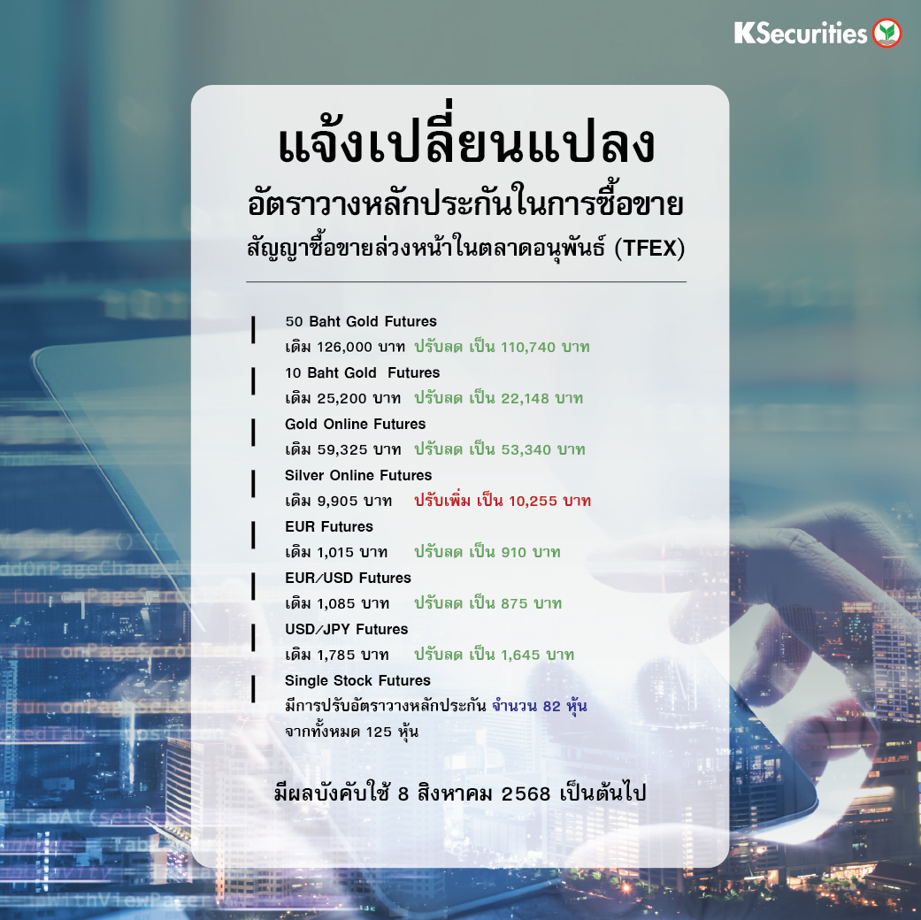 EN Version แจ้งเปลี่ยนแปลงอัตราวางหลักประกันในการซื้อขายสัญญาซื้อขายล่วงหน้าในตลาด TFEX