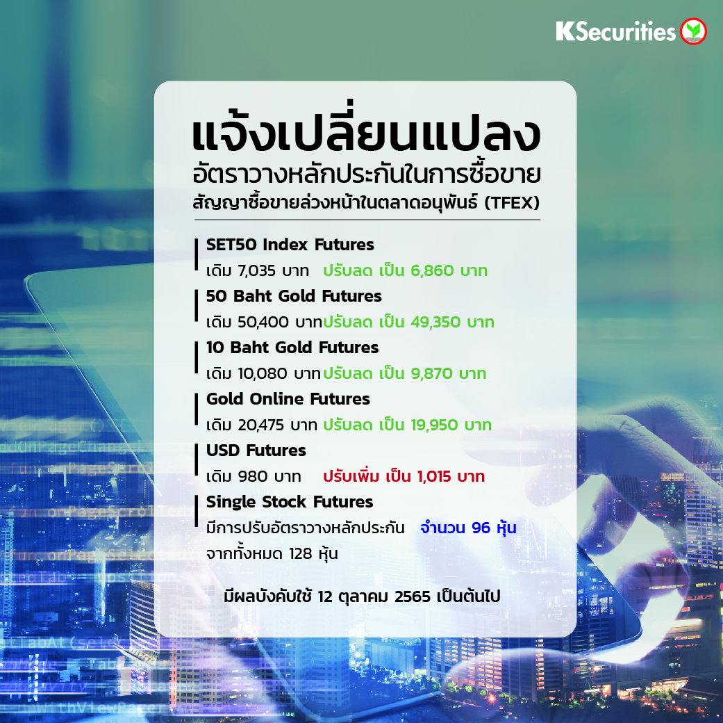 TH แจ้งเปลี่ยนแปลงอัตราวางหลักประกันในการซื้อขายสัญญาซื้อขายล่วงหน้าในตลาด TFEX