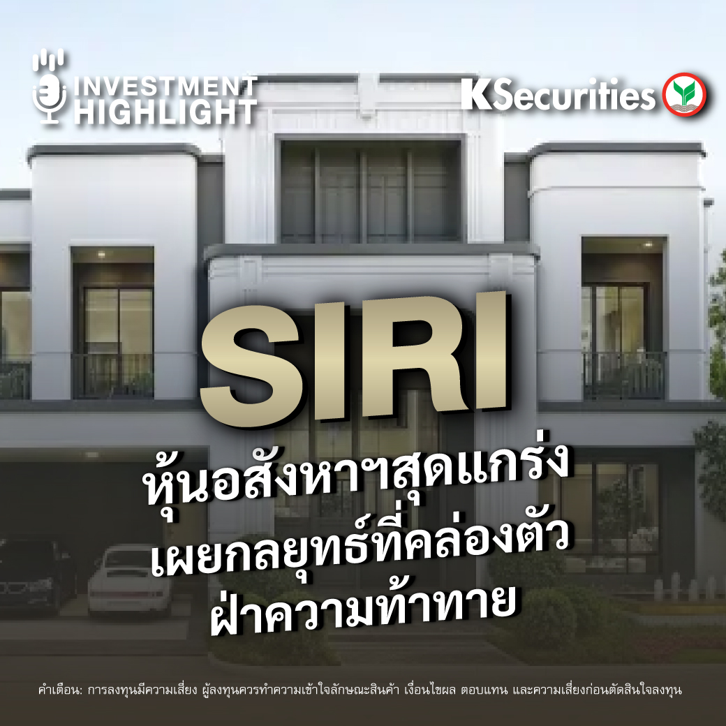 SIRI หุ้นอสังหาฯ สุดแกร่ง เผยกลยุทธ์ที่คล่องตัว ฝ่าความท้าทาย (6 ก.พ. 67)