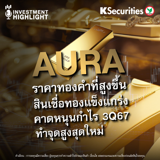 AURA ราคาทองคำที่สูงขึ้น สินเชื่อทองแข็งแกร่ง คาดหนุนกำไร 3Q67 ทำจุดสูงสุดใหม่ (13 ก.ย. 67)