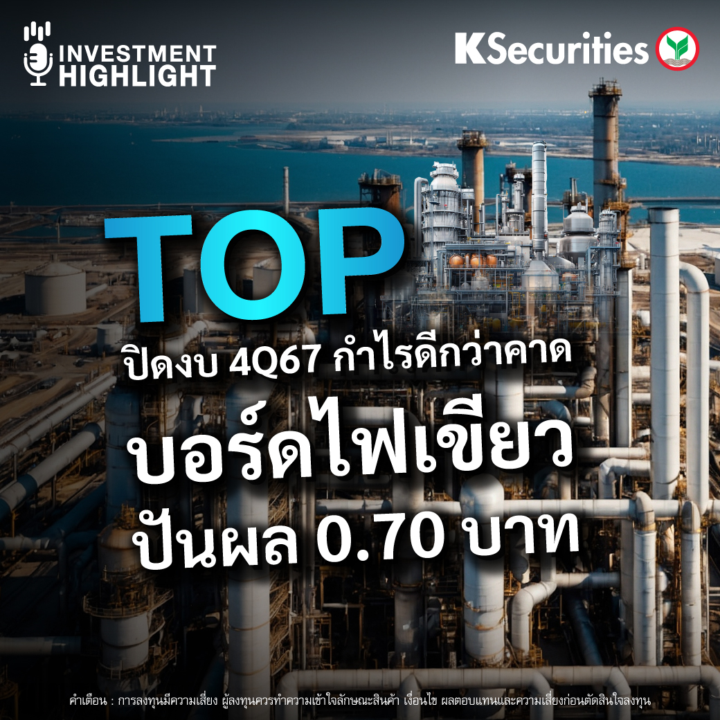 TOP ปิดงบ 4Q67 กำไรดีกว่าคาด บอร์ดไฟเขียวปันผล 0.70 บาท (17 ก.พ. 67)