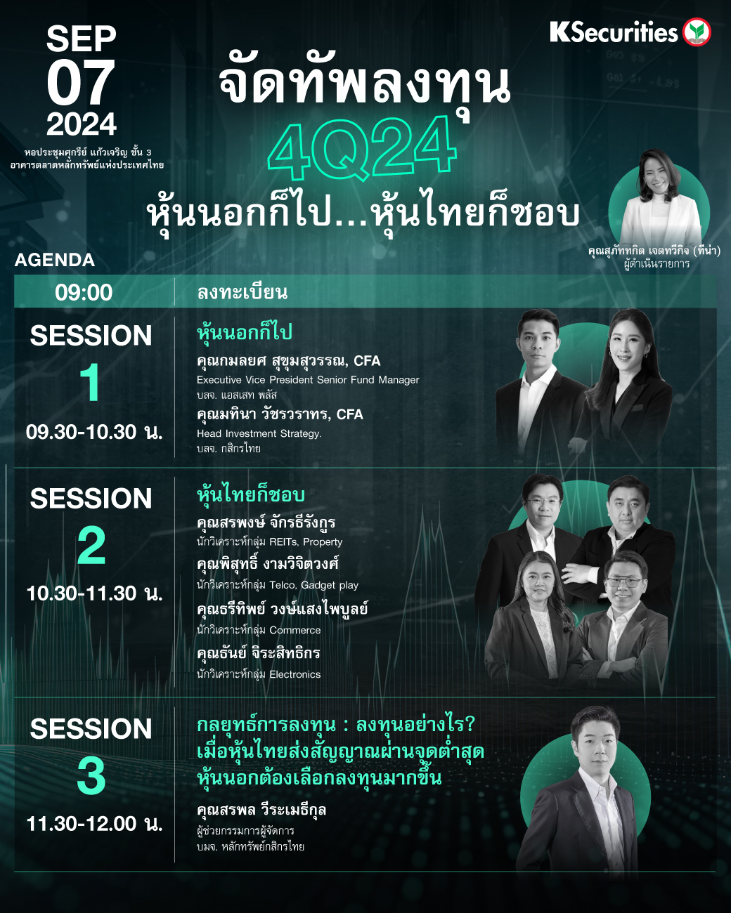 กรณีท่านสนใจลงทะเบียนสัมมนา แต่ไม่มีบัญชีกับทางหลักทรัพย์กสิกรไทย หรือไม่สามารถทำการลงทะเบียนผ่านหน้าเว็บไซต์ได้ กรุณาติดต่อ KS Call Center โทร. 02-7960011