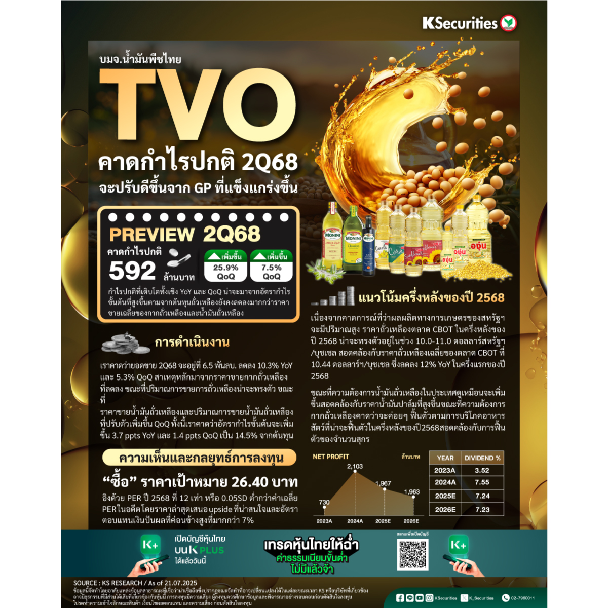 TVO คาดกำไรปกติ 2Q68 จะปรับดีขึ้นจาก GP ที่แข็งแกร่งขึ้น