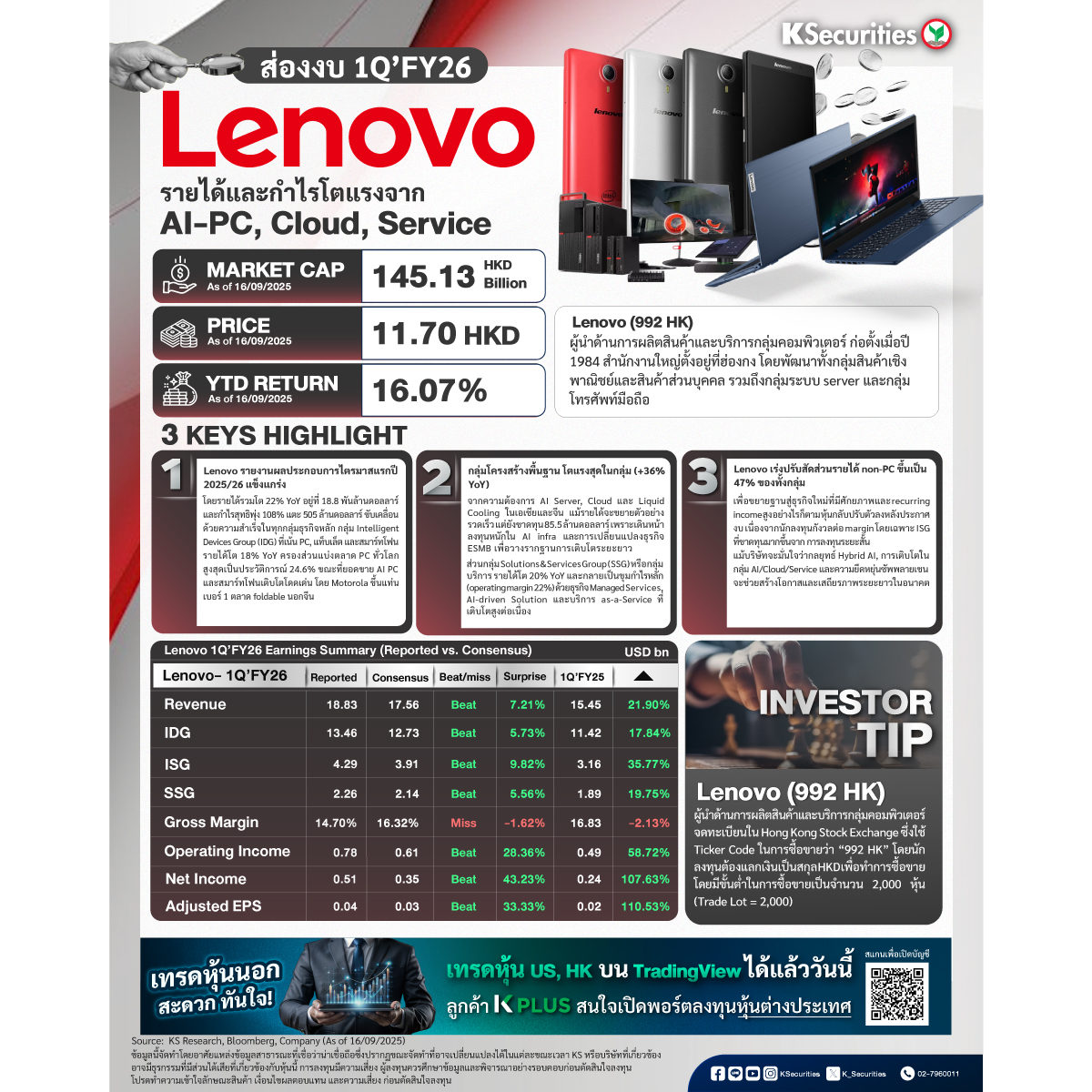#KS #Ksecurities #หลักทรัพย์กสิกรไทย #หุ้นต่างประเทศ #หุ้นสหรัฐ #หุ้นสหรัฐอเมริกา #หุ้นฮ่องกง #หุ้นยุโรป #หุ้นเทค #ผลตอบแทน #Lenovo #AI #PC #สมาร์ทโฟน