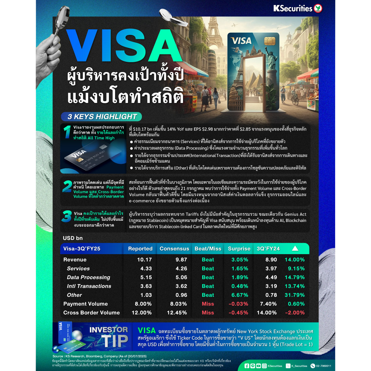 3. Visa คงเป้ารายได้และกำไรทั้งปีที่ระดับเดิม ไม่ปรับขึ้นแม้งบจะออกมาดีกว่าคาด