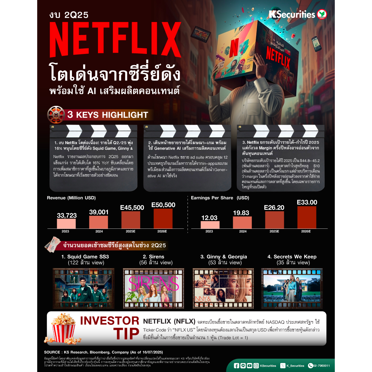 - งบ Netflix โตต่อเนื่อง! รายได้ Q2/25 พุ่ง 16% หนุนโดยซีรี่ย์ดัง Squid Game, Ginny & Georgia