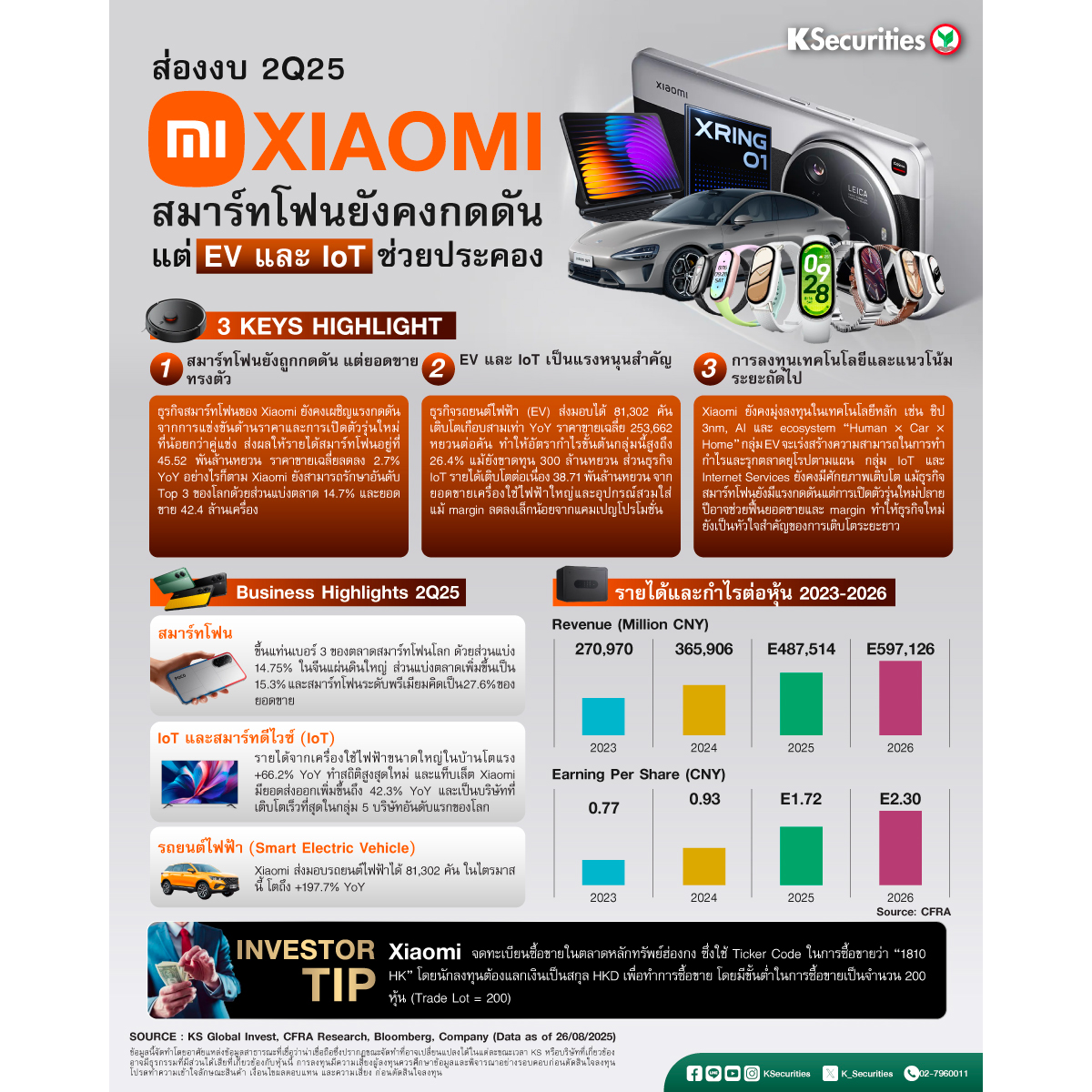 KS: ส่องงบ 2Q25 Xiaomi สมาร์ทโฟนยังคงกดดัน แต่ EV และ IoT ช่วยประคอง
