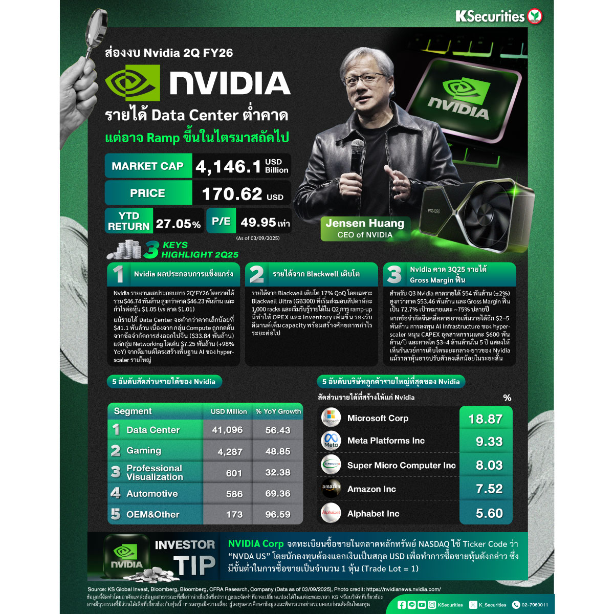 KS: ส่องงบ Nvidia 2Q FY26 รายได้ Data Center ต่ำคาด แต่อาจ Ramp ขึ้นในไตรมาสถัดไป