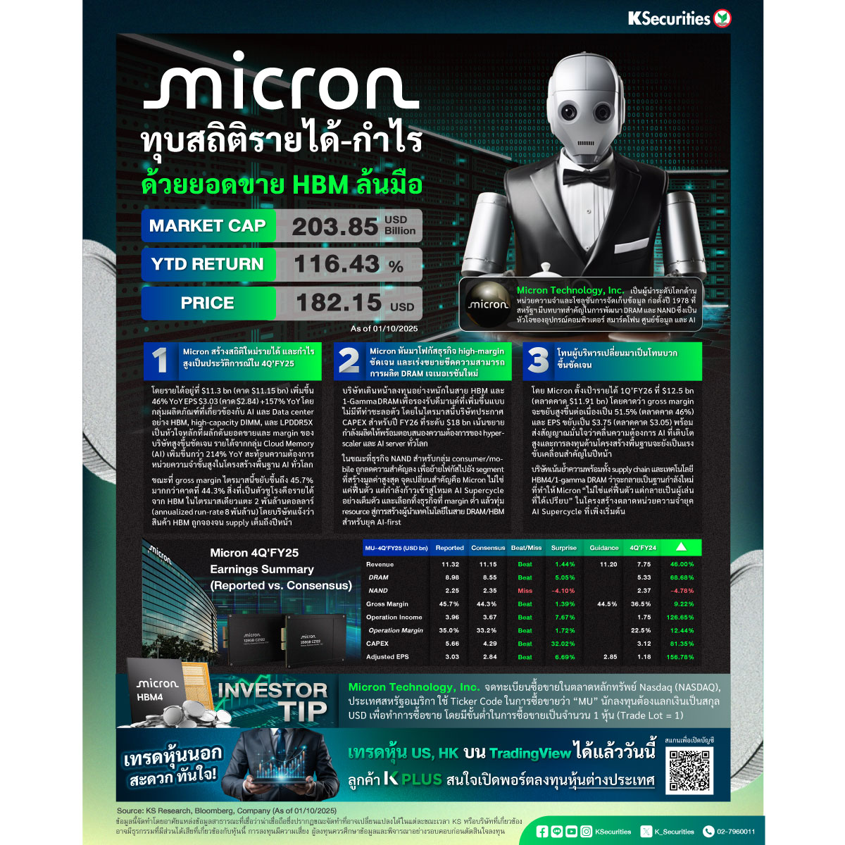 #KS #Ksecurities #หลักทรัพย์กสิกรไทย #หุ้นต่างประเทศ #หุ้นสหรัฐ #หุ้นสหรัฐอเมริกา #หุ้นฮ่องกง #หุ้นยุโรป #หุ้นเทค #ผลตอบแทน #Micron