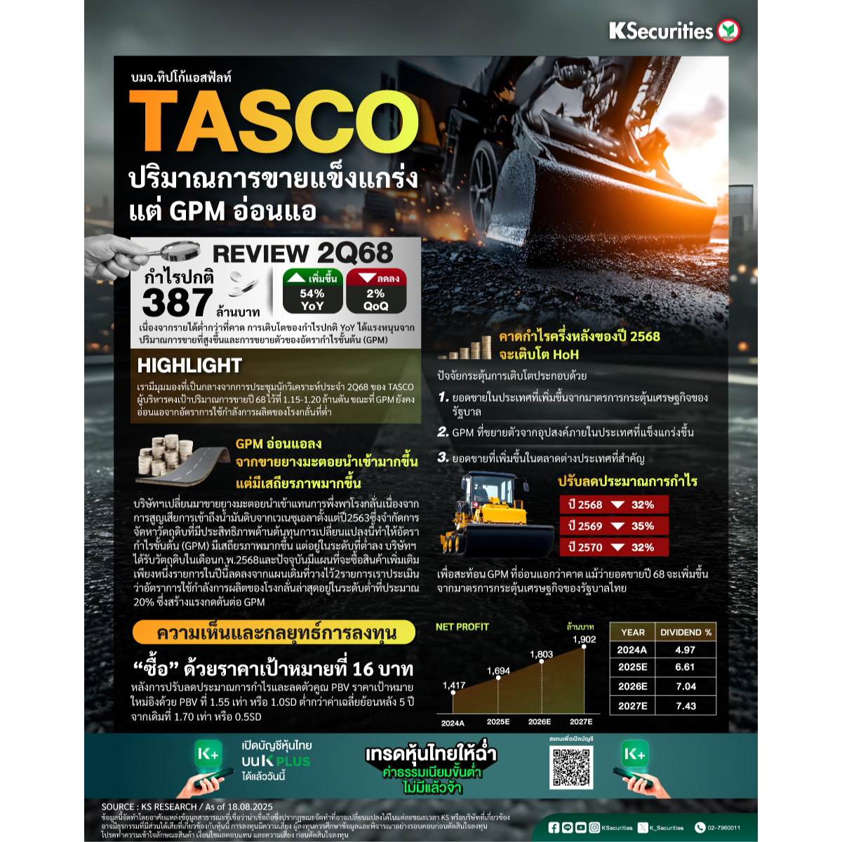 #KS #หลักทรัพย์กสิกรไทย #KSecurities #การลงทุน #การลงทุนหลักทรัพย์ #ผลตอบแทน #ข่าวหุ้น #หุ้นไทย #TASCO