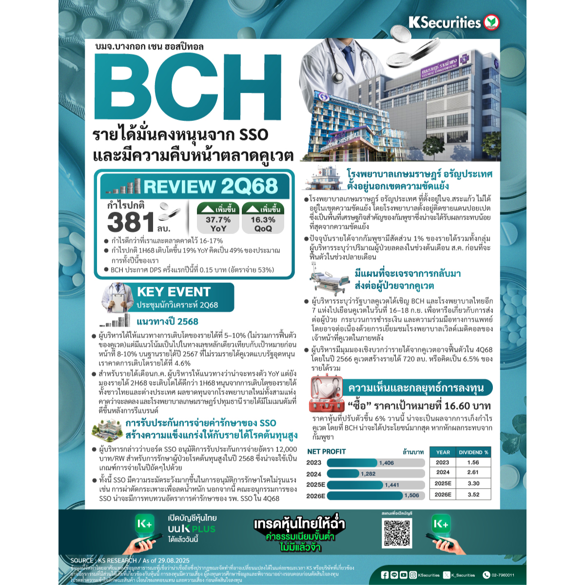KS: BCH รายได้มั่นคงหนุนจาก SSO และมีความคืบหน้าตลาดคูเวต