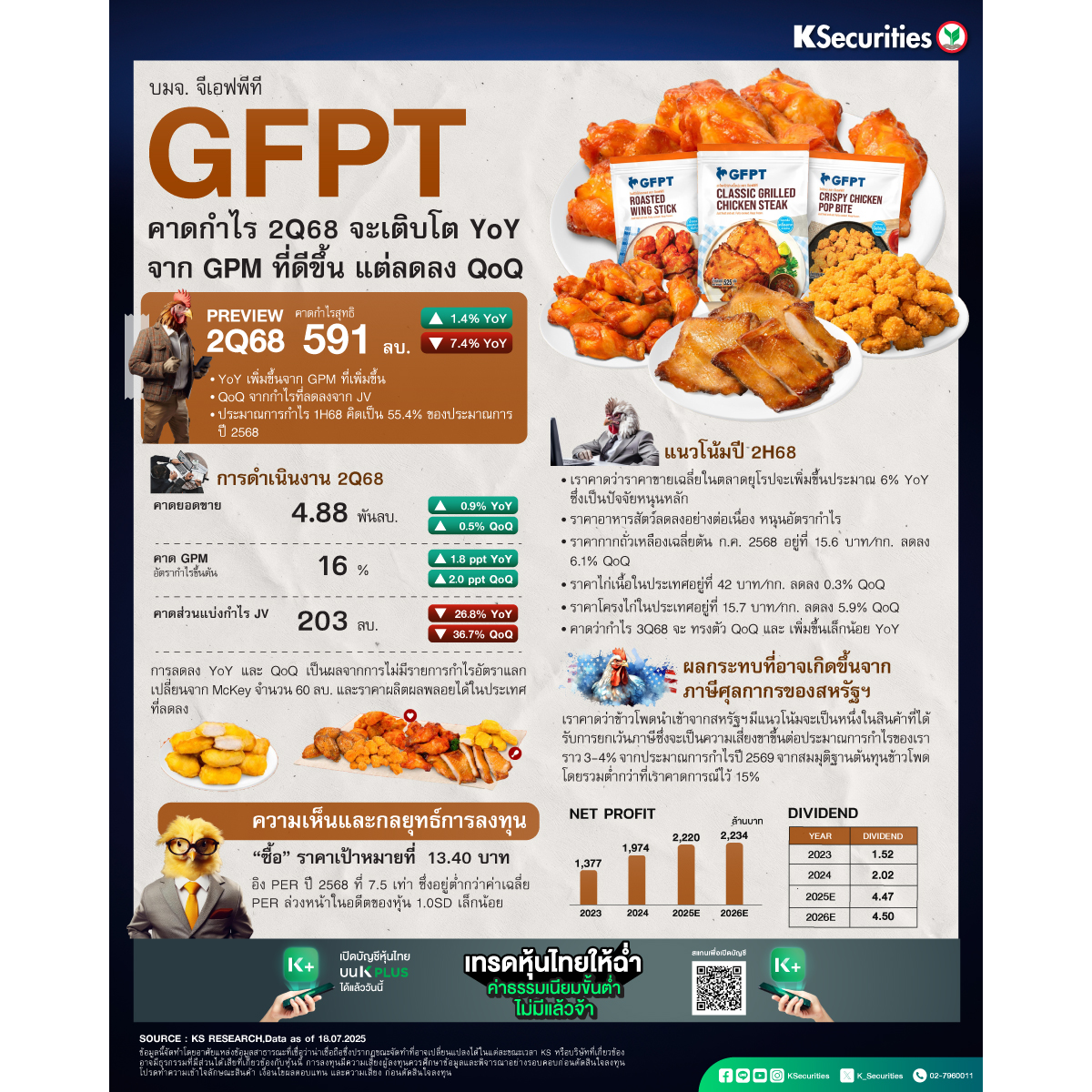 GFPT คาดกำไร 2Q68 จะเติบโต YoY จาก GPM ที่ดีขึ้น แต่ลดลง QoQ