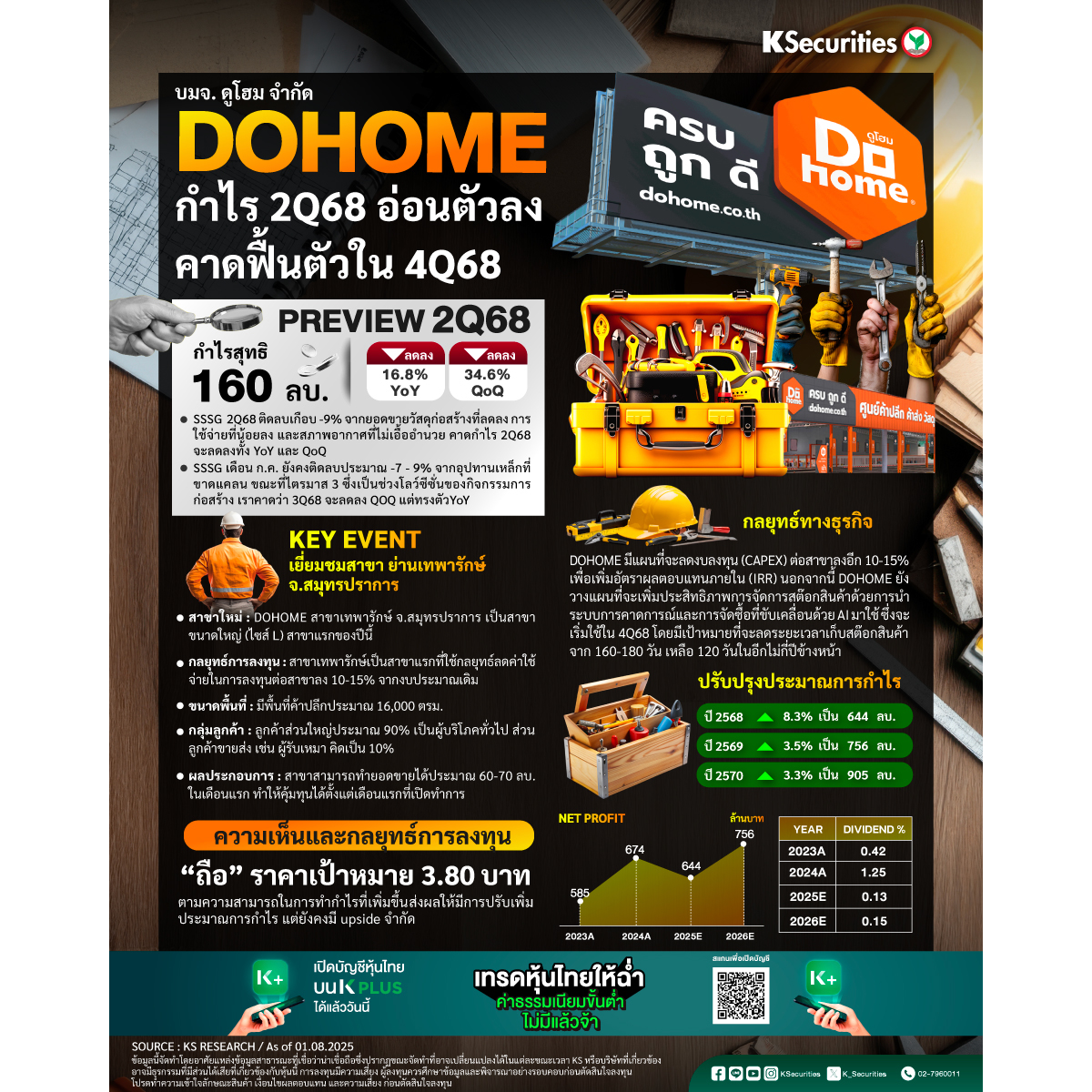 DOHOME: กำไรไตรมาส 2/68 อ่อนตัวลง คาดฟื้นตัวในไตรมาส 4/68
