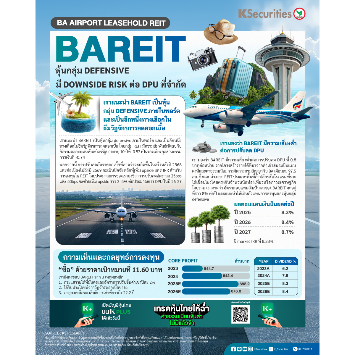 เราแนะนำ BAREIT เป็นหุ้นกลุ่ม defensive ภายในพอร์ต และเป็นอีกหนึ่งทางเลือกในธีมวัฏจักรการลดดอกเบี้ย