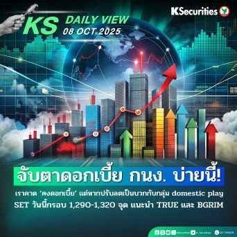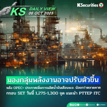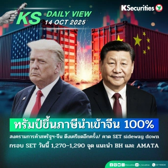 KS Daily View 27.10.2025 >>> ตลาด Sideway up จากภาพเชิงบวกต่างประเทศ การค้าสหรัฐ-จีนดูผ่อนคลายลง กรอบ SET วันนี้ 1,305–1,325 จุด แนะนำ KCE และ TFM