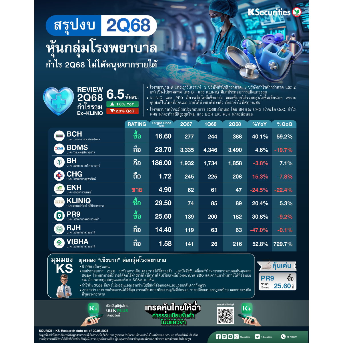 #KS #หลักทรัพย์กสิกรไทย #KSecurities #หุ้น #หุ้นไทย #ข่าวหุ้น #ลงทุน #BCH #BDMS #BH #CHG #EKH #KLNIQ #PR9 #RJH #RPH #THG #VIBHA #Healcare #โรงพยาบาล