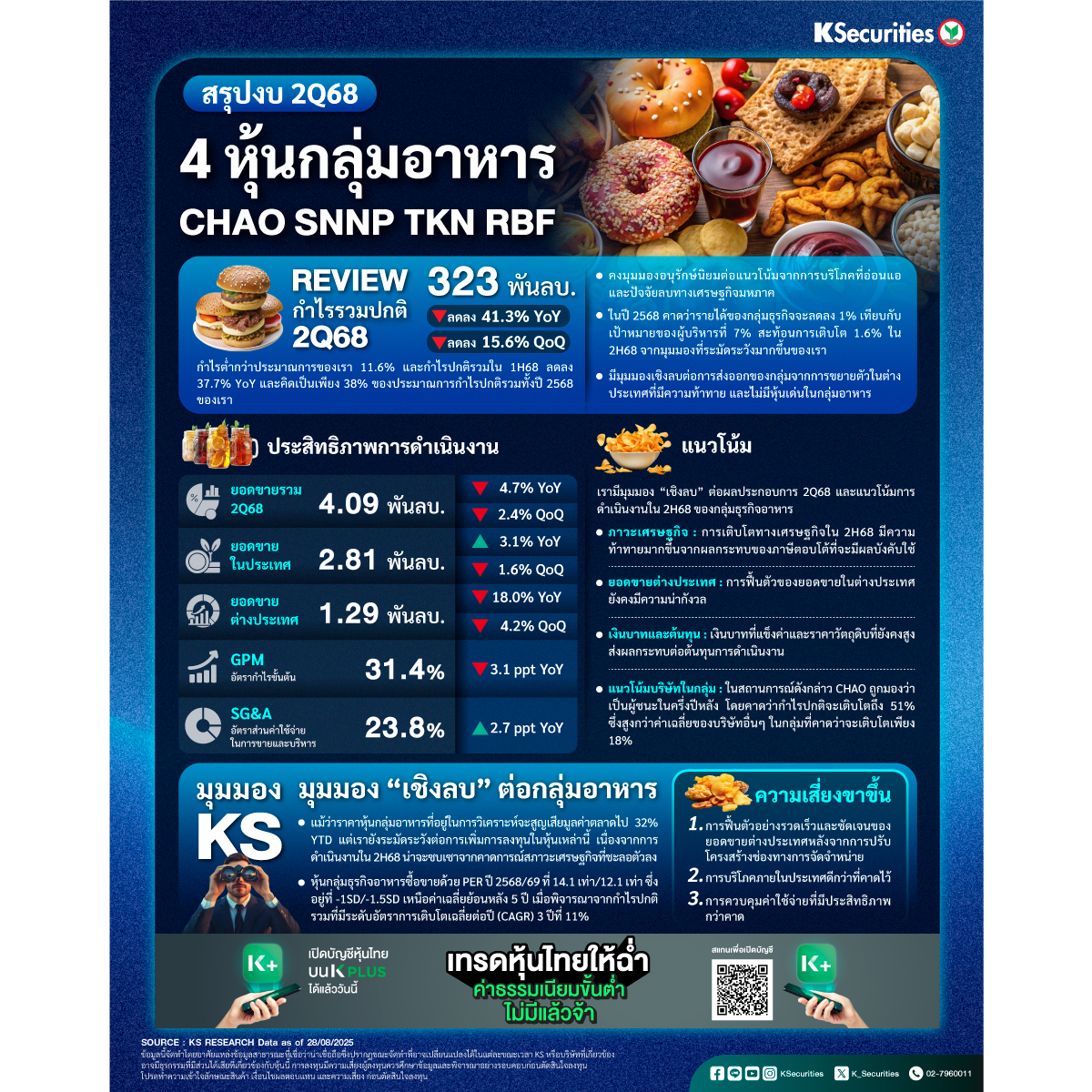 #KS #หลักทรัพย์กสิกรไทย #KSecurities #การลงทุน #การลงทุนหลักทรัพย์ #ผลตอบแทน #ข่าวหุ้น #หุ้นไทย #Food #RBF #CHAO #SNNP #TKN