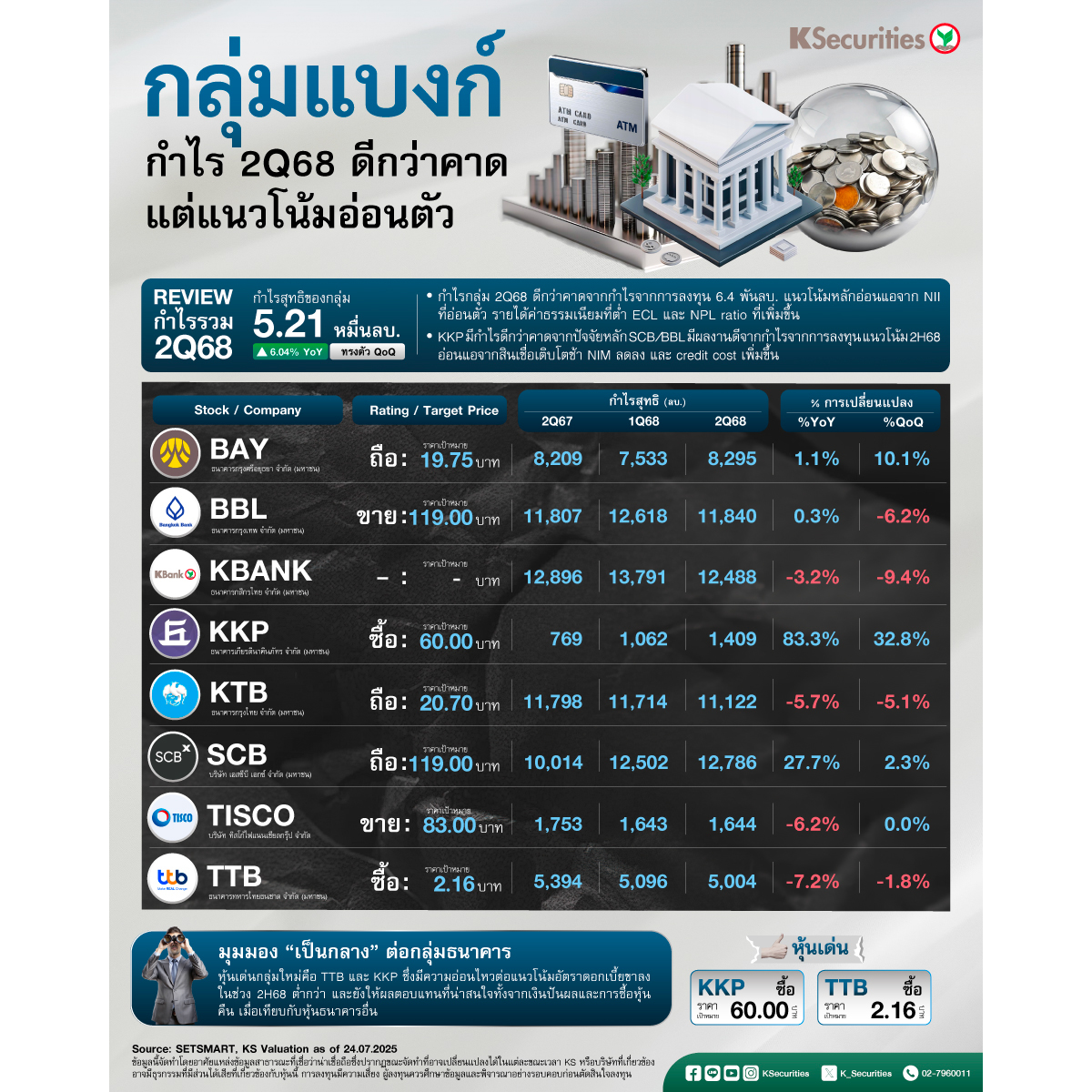 Review Banking Sector : กำไร 2Q68 ดีกว่าคาด แต่แนวโน้มอ่อนตัว