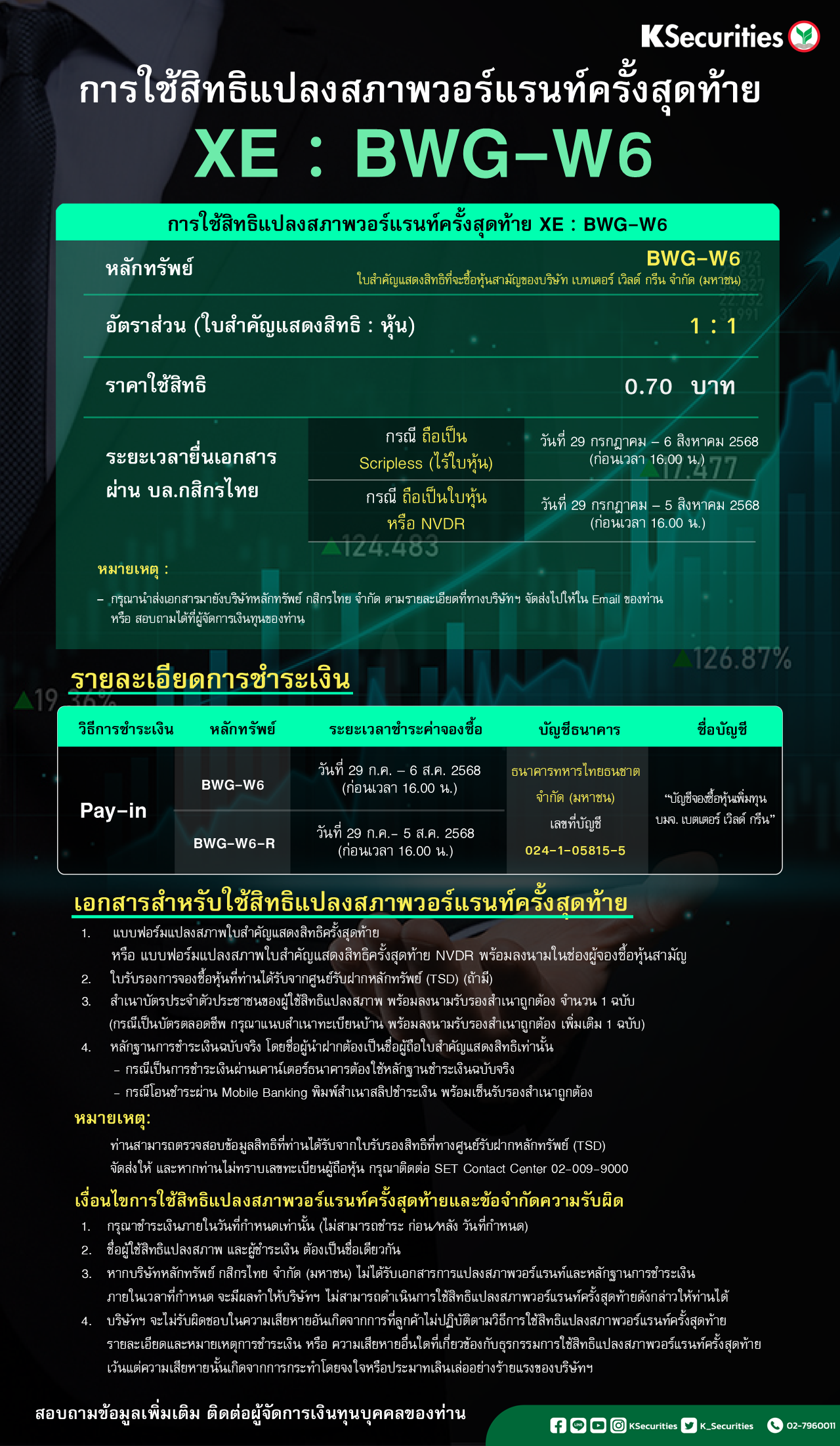 การใช้สิทธิแปลงสภาพวอร์แรนท์ครั้งสุดท้าย XE : BWG-W6