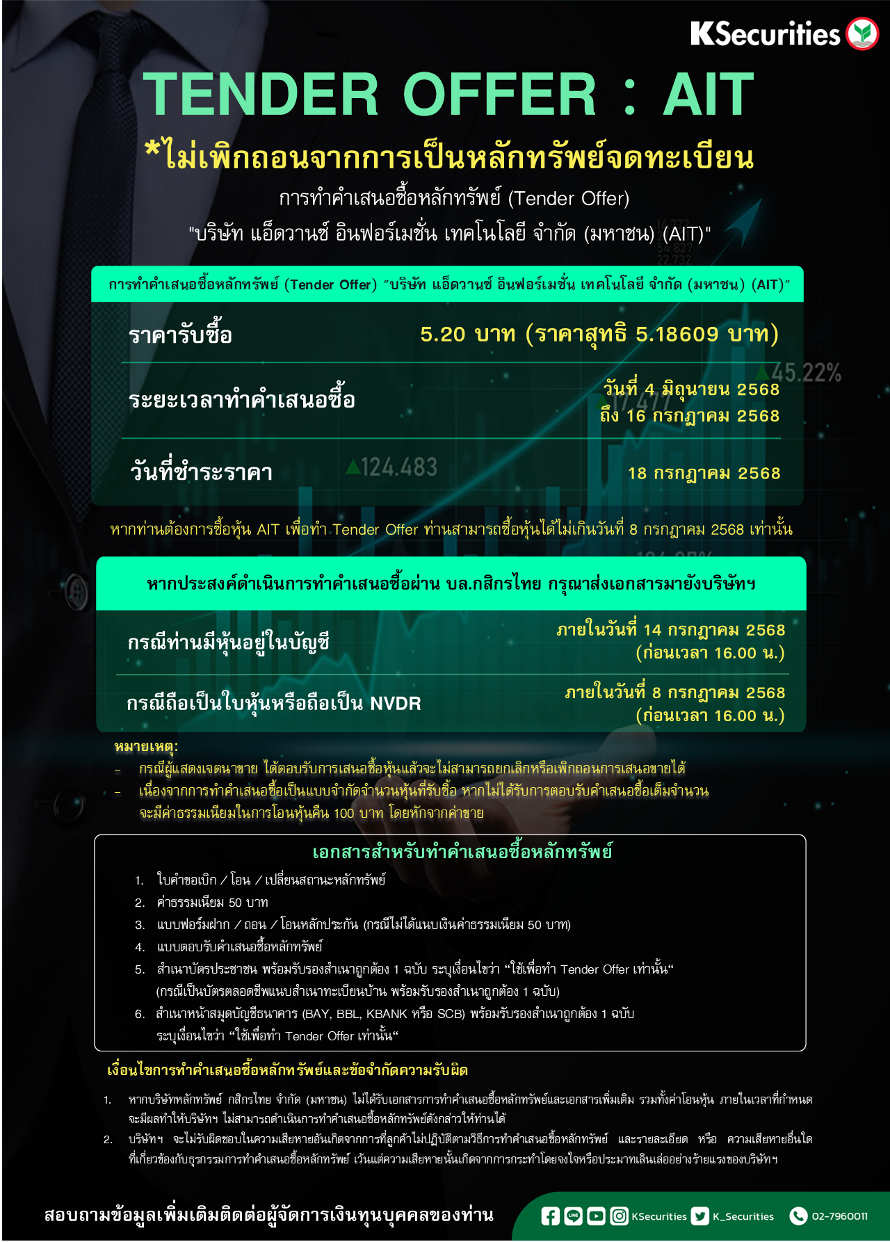 ใบคำขอเบิก / โอน / เปลี่ยนสถานะหลักทรัพย์ AIT