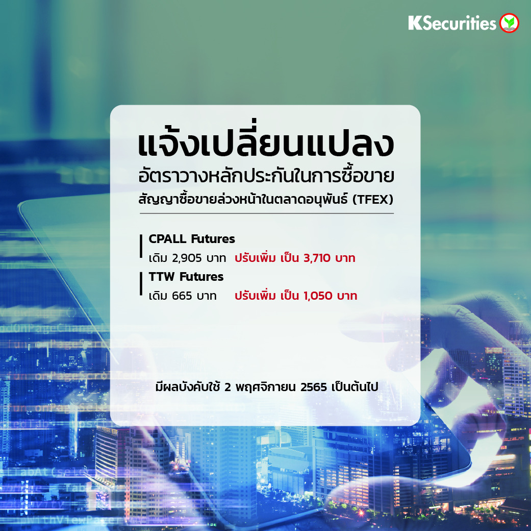TH Version แจ้งเปลี่ยนแปลงอัตราวางหลักประกันในการซื้อขายสัญญาซื้อขายล่วงหน้าในตลาด TFEX