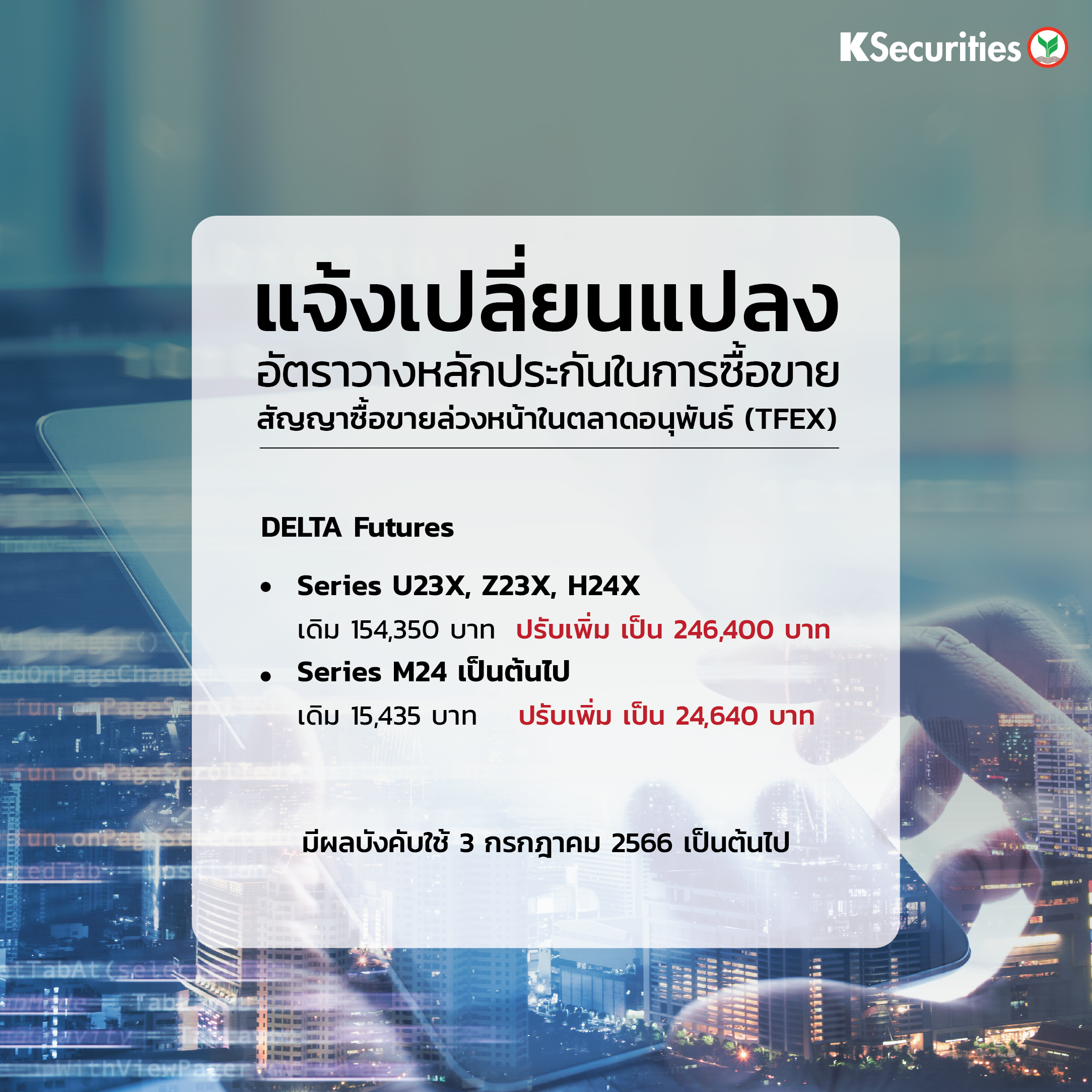 TH Version แจ้งเปลี่ยนแปลงอัตราวางหลักประกันในการซื้อขายสัญญาซื้อขายล่วงหน้าในตลาด TFEX