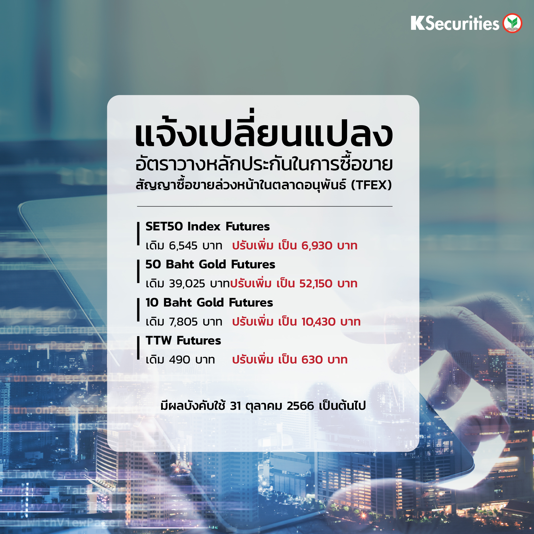 TH Version แจ้งเปลี่ยนแปลงอัตราวางหลักประกันในการซื้อขายสัญญาซื้อขายล่วงหน้าในตลาด TFEX
