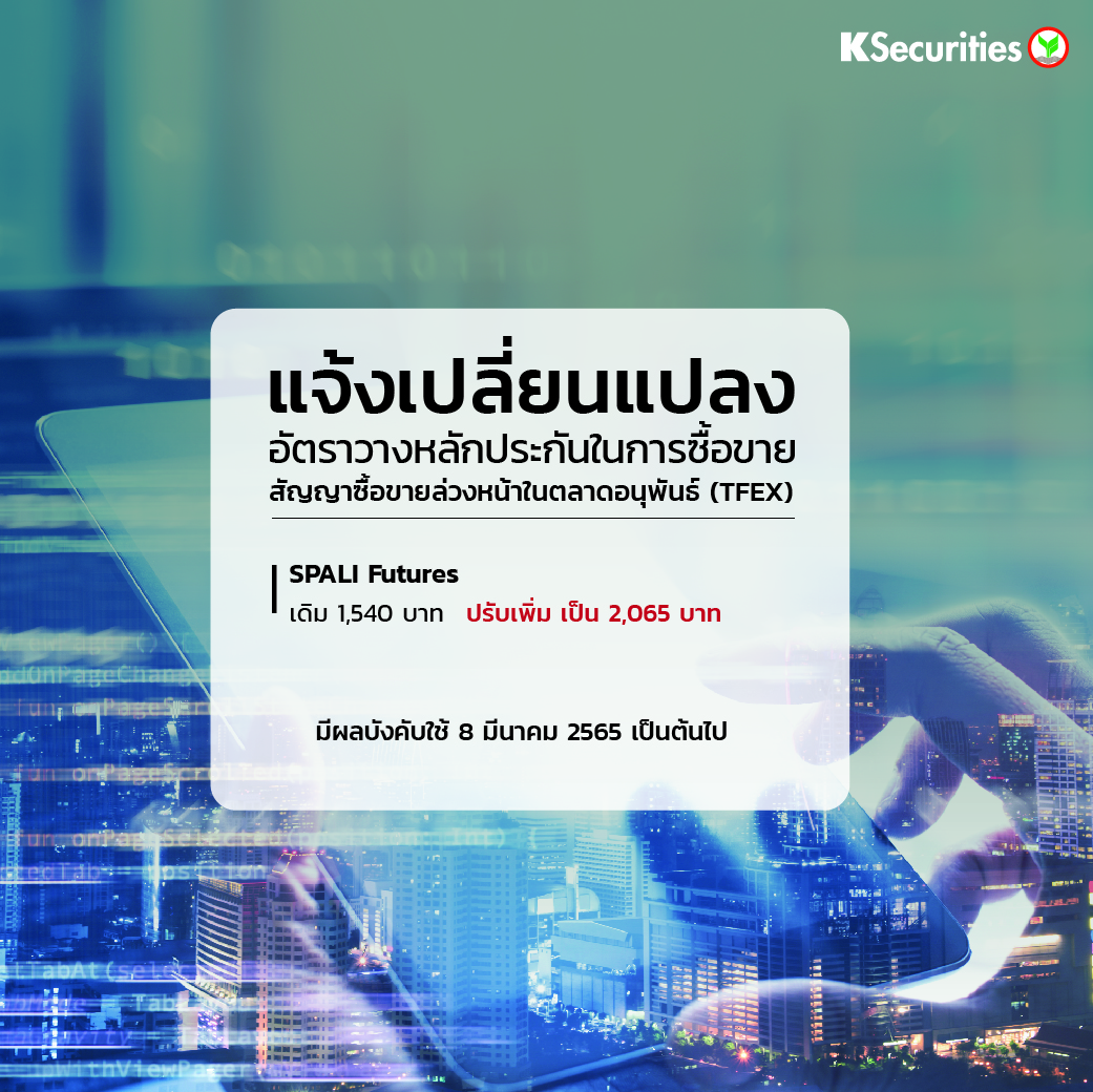TH Version แจ้งเปลี่ยนแปลงอัตราวางหลักประกันในการซื้อขายสัญญาซื้อขายล่วงหน้าในตลาด TFEX