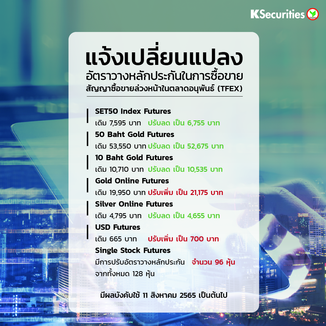 EN Version แจ้งเปลี่ยนแปลงอัตราวางหลักประกันในการซื้อขายสัญญาซื้อขายล่วงหน้าในตลาด TFEX