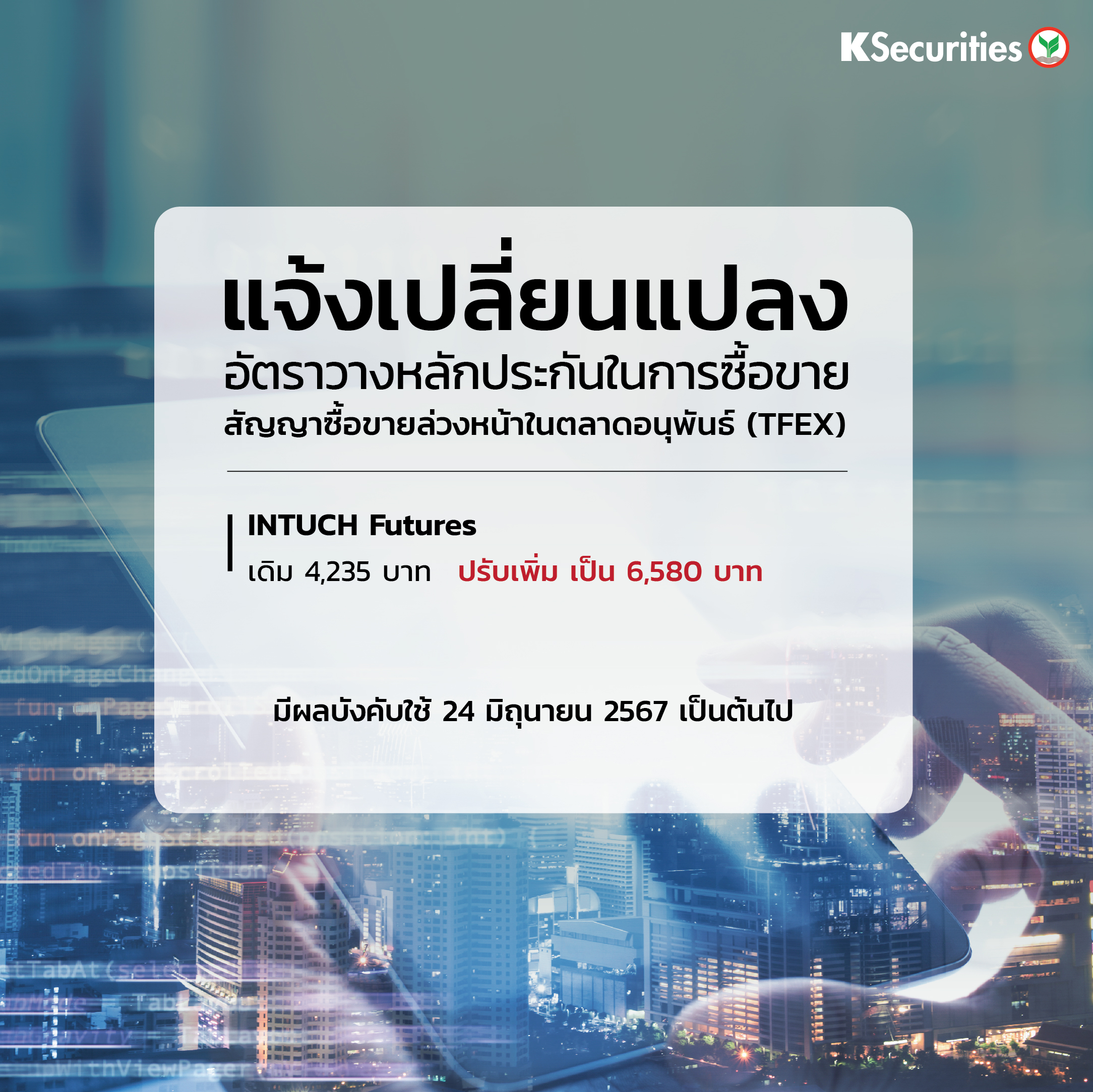 EN Version แจ้งเปลี่ยนแปลงอัตราวางหลักประกันในการซื้อขายสัญญาซื้อขายล่วงหน้าในตลาด TFEX