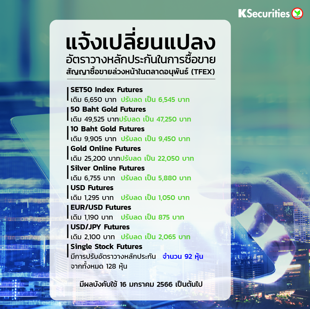 TH Version แจ้งเปลี่ยนแปลงอัตราวางหลักประกันในการซื้อขายสัญญาซื้อขายล่วงหน้าในตลาด TFEX