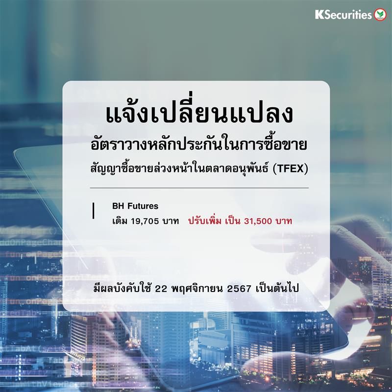 TH Version แจ้งเปลี่ยนแปลงอัตราวางหลักประกันในการซื้อขายสัญญาซื้อขายล่วงหน้าในตลาด TFEX