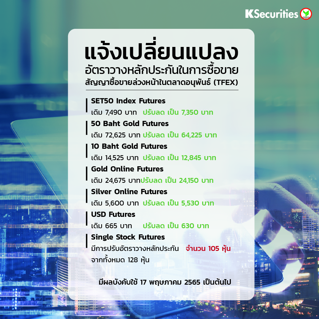 TH Version แจ้งเปลี่ยนแปลงอัตราวางหลักประกันในการซื้อขายสัญญาซื้อขายล่วงหน้าในตลาด TFEX