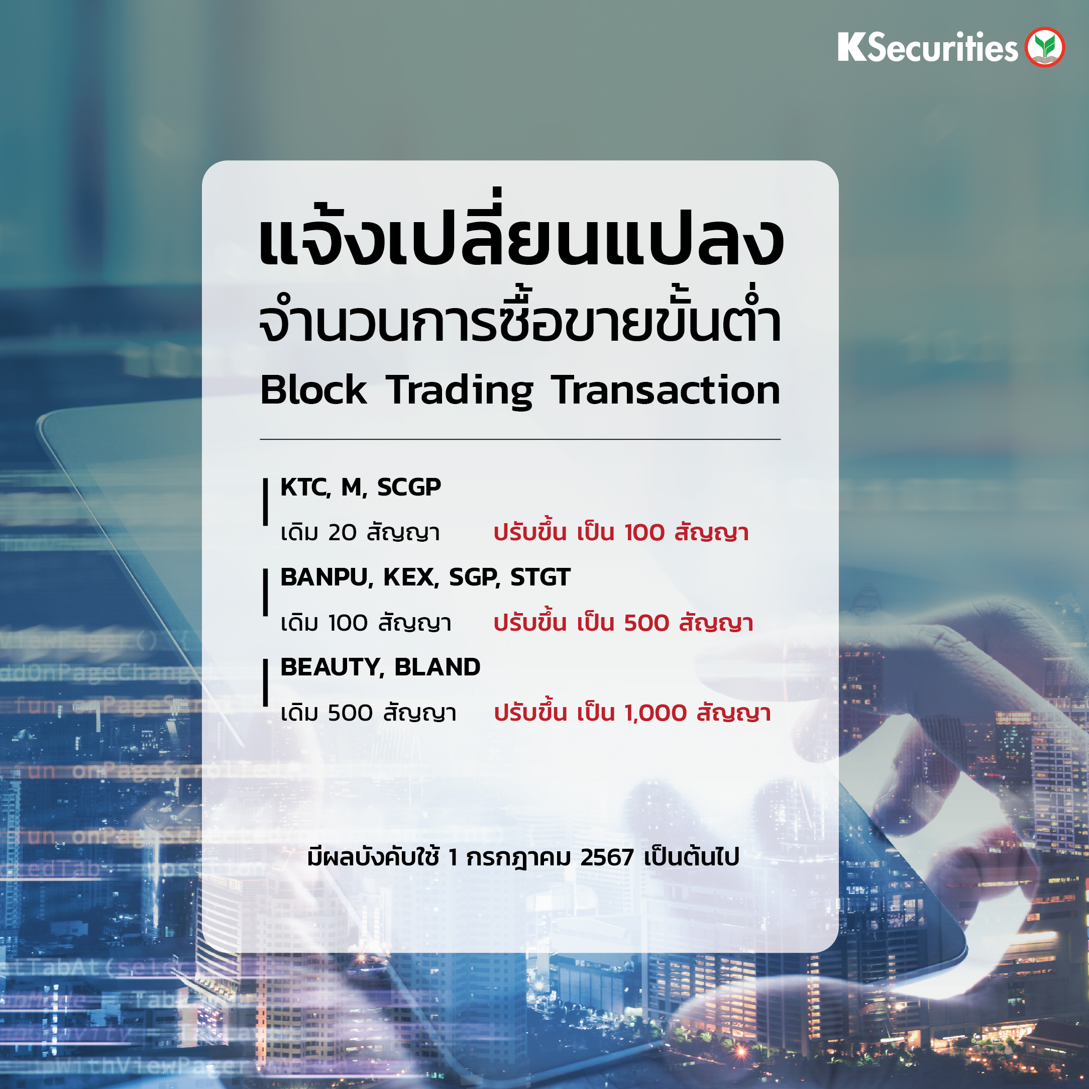 ประกาศจากหลักทรัพย์กสิกรไทย