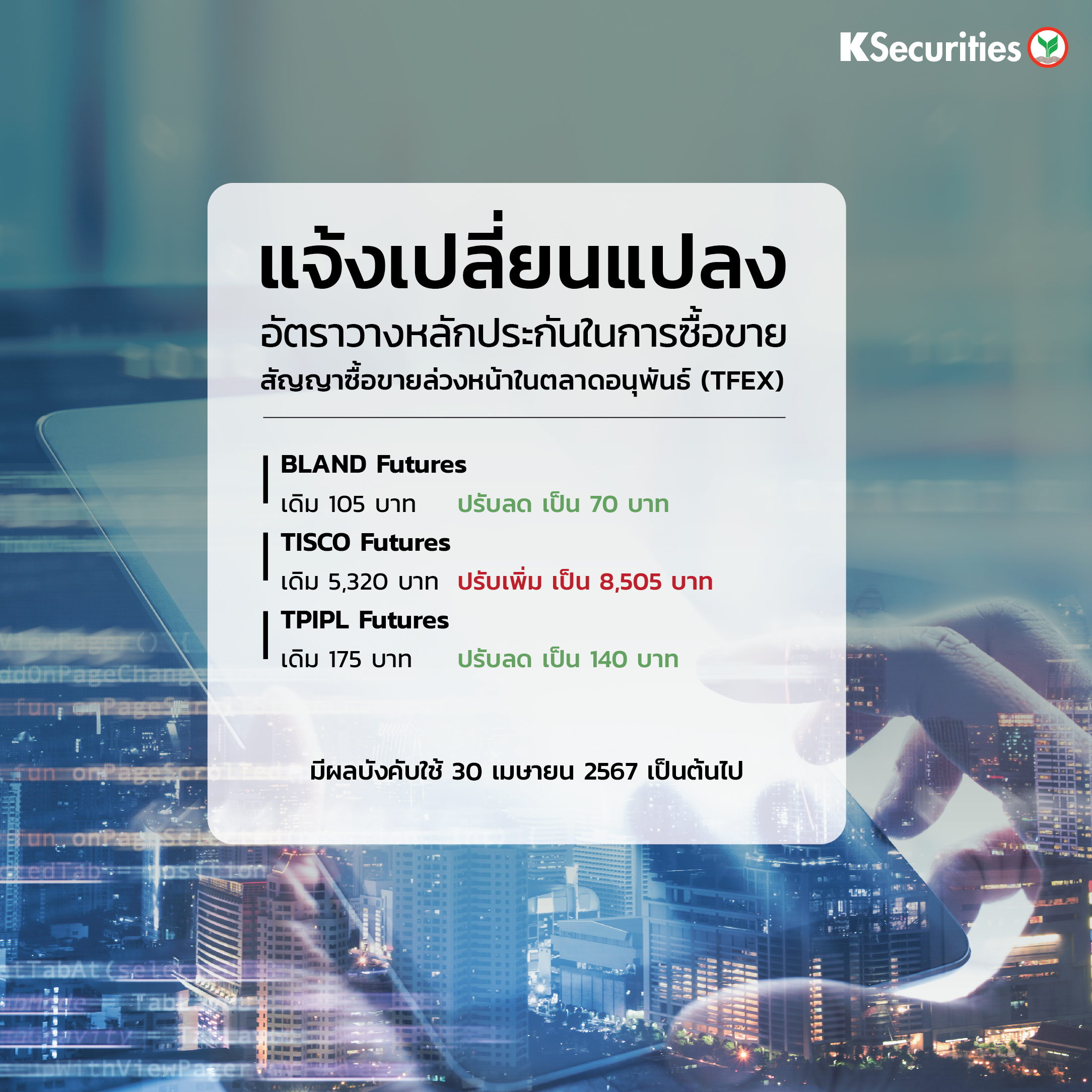 TH Version แจ้งเปลี่ยนแปลงอัตราวางหลักประกันในการซื้อขายสัญญาซื้อขายล่วงหน้าในตลาด TFEX